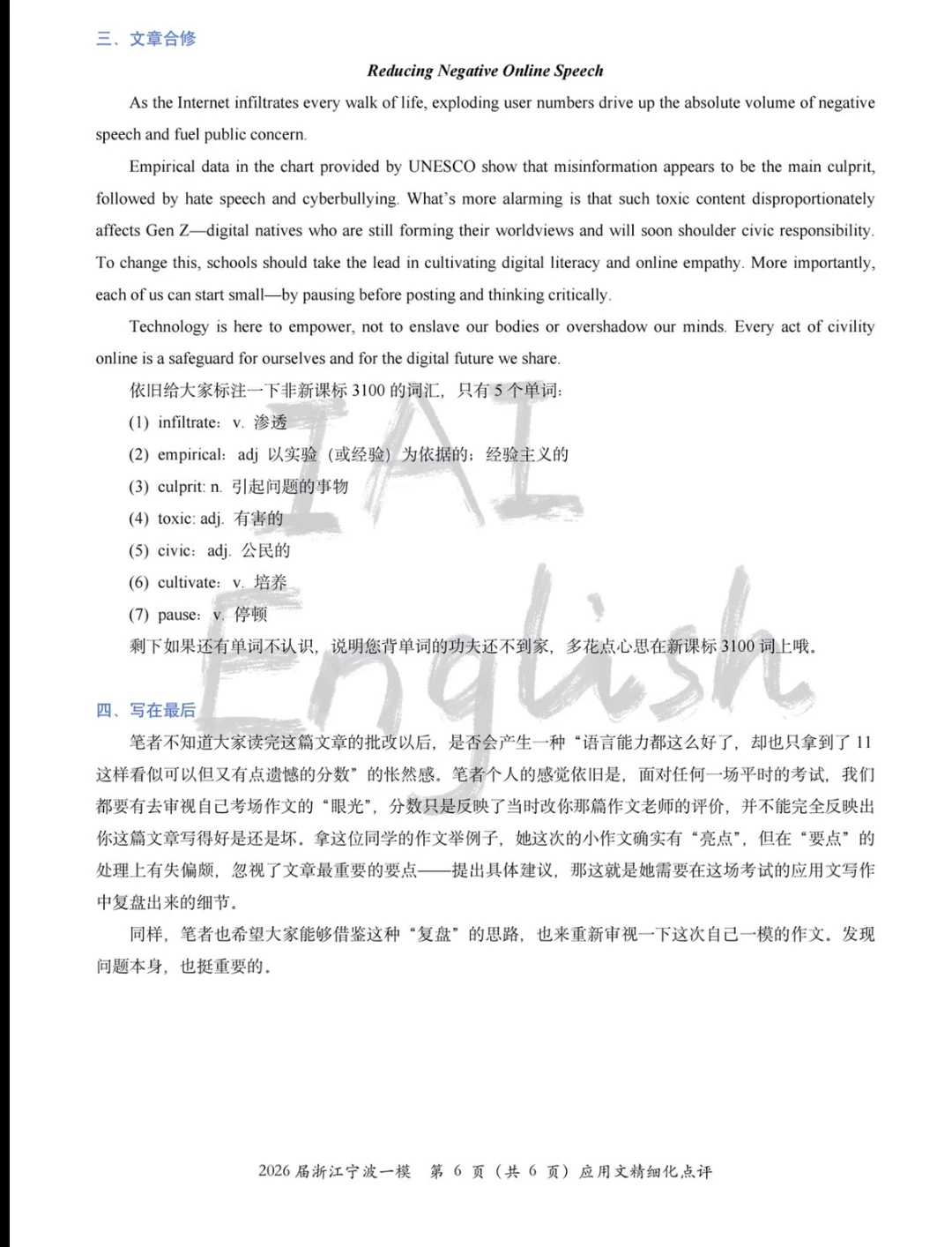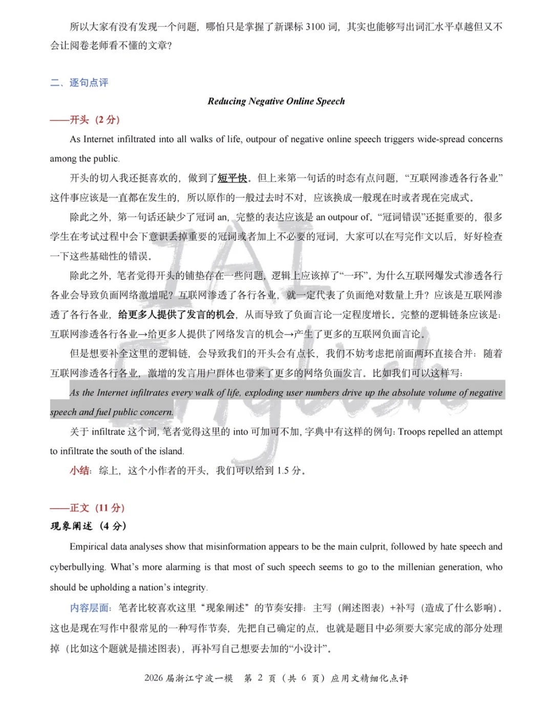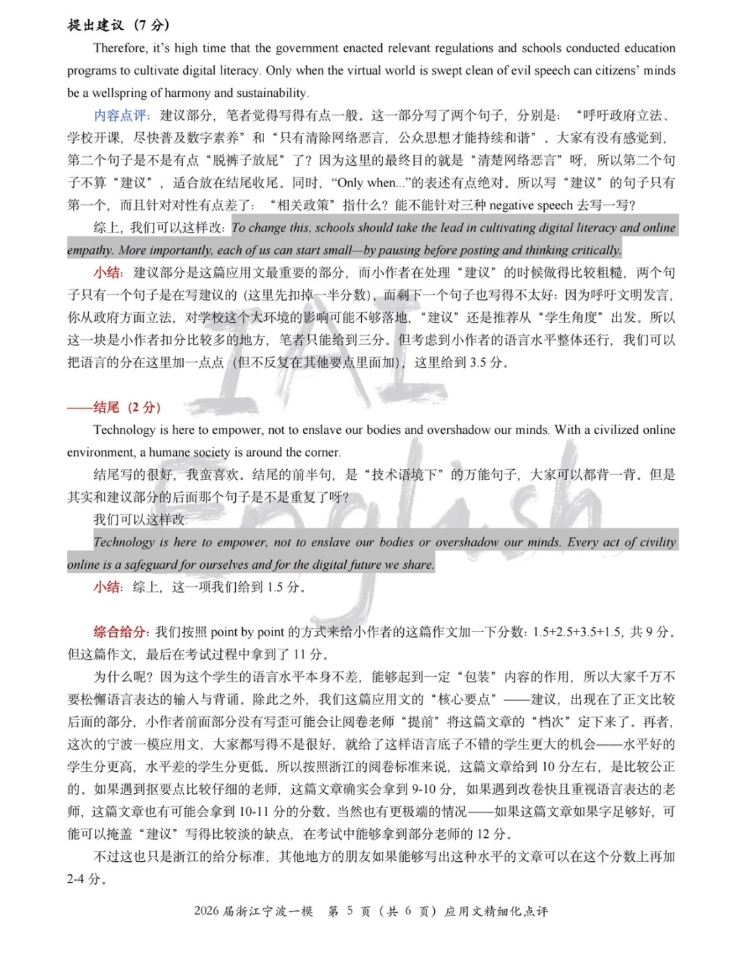 宁波一模英语No.1的应用文还不够好?