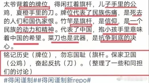 得闲谨制里为什么让小孩抱公鸡《得闲谨制》结尾一幕震撼人心。一个家庭便成了民族的缩影,无声宣告着铭记、信仰、希望与捍卫