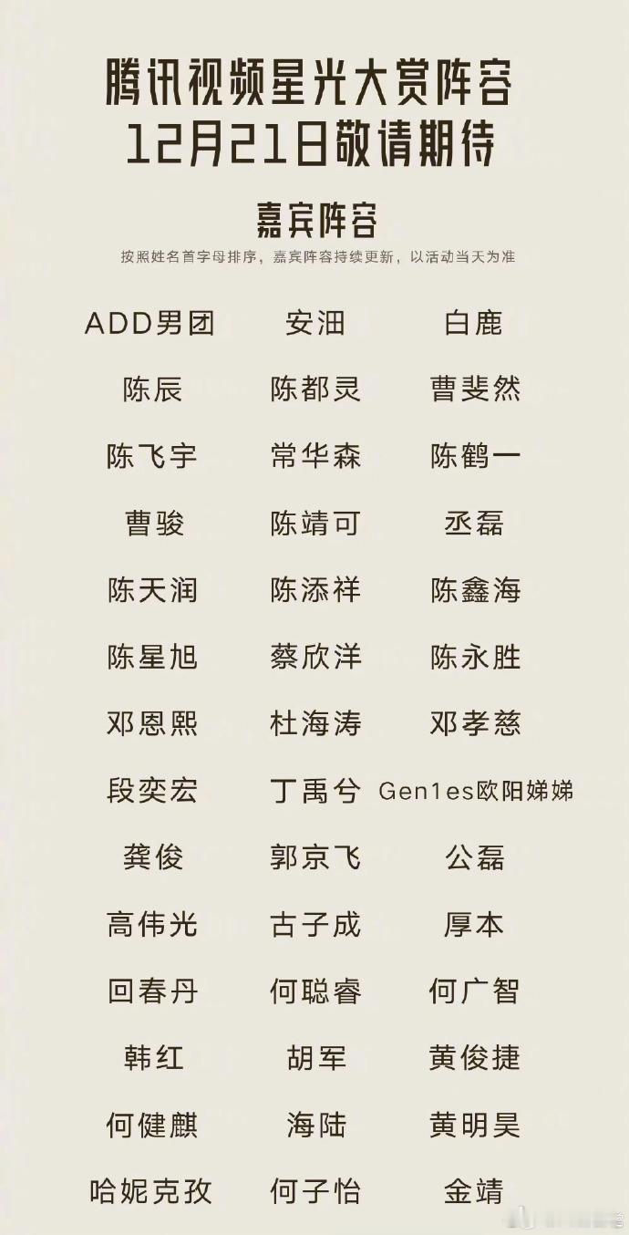 星光大赏阵容官宣星光也是一届不如一届了连隔壁尖叫之夜都不如撑台面的都没有