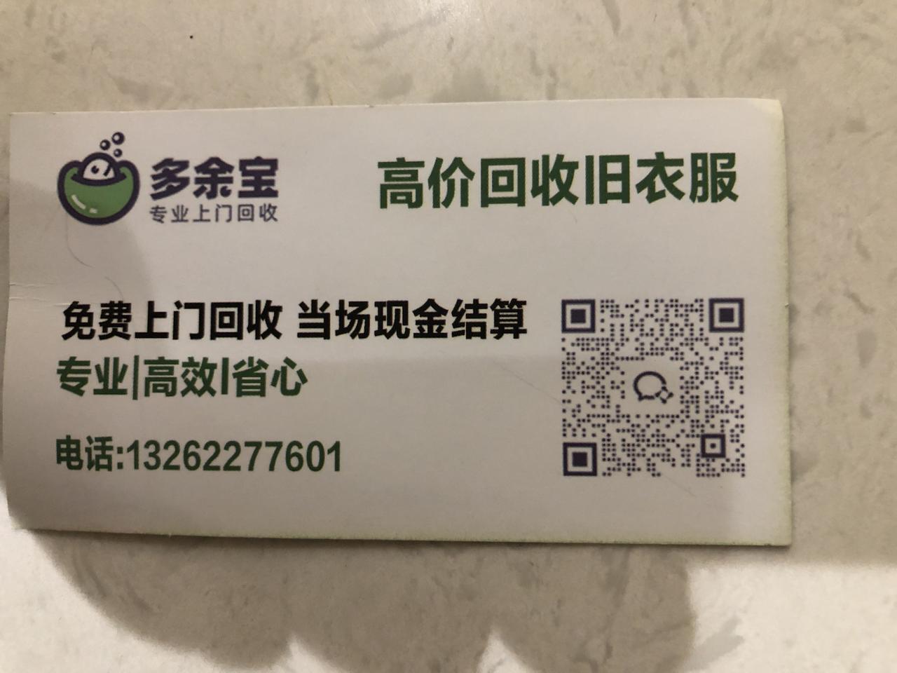 上门回收旧衣服?最近上海居民发现有人散发这种广告。问题来了这些可能携带病毒的衣服回收去干嘛?有人说卖给非洲和巴勒斯坦,而且还是一笔很赚钱的买卖。那么由此带来的卫生疾病传播问题谁来管?或者这些衣服有可能流入淘宝或拼多多这些电商吗?
