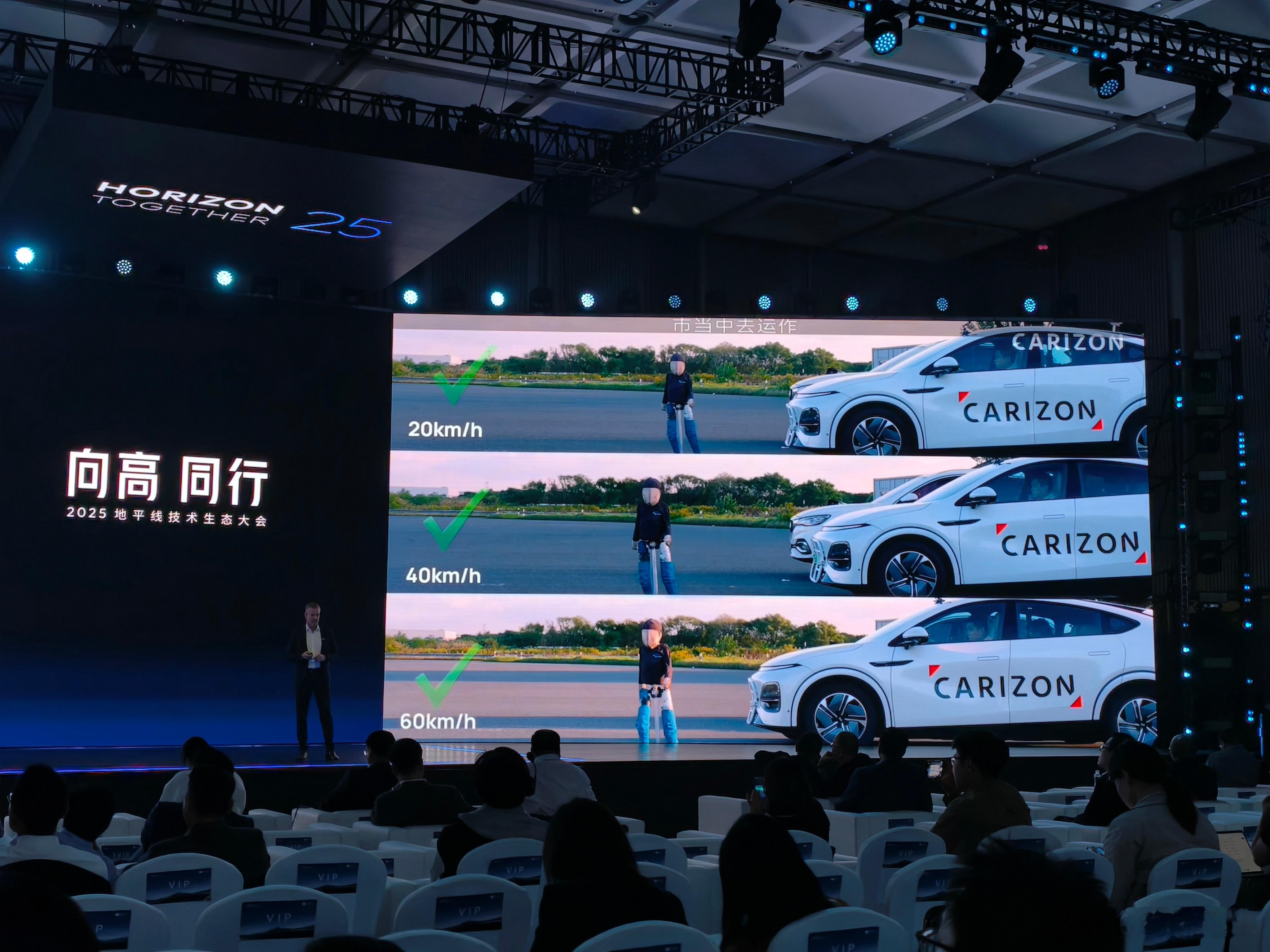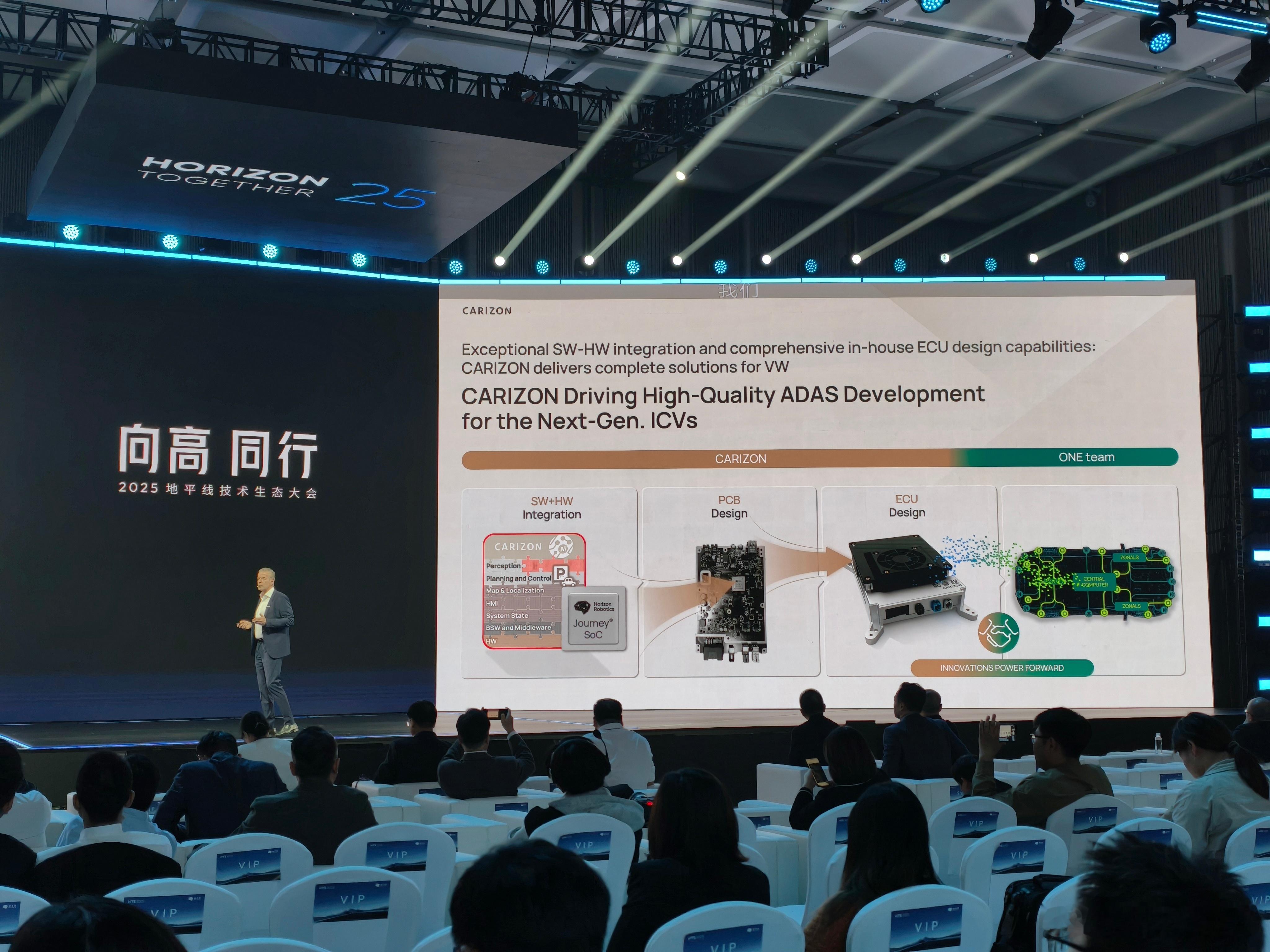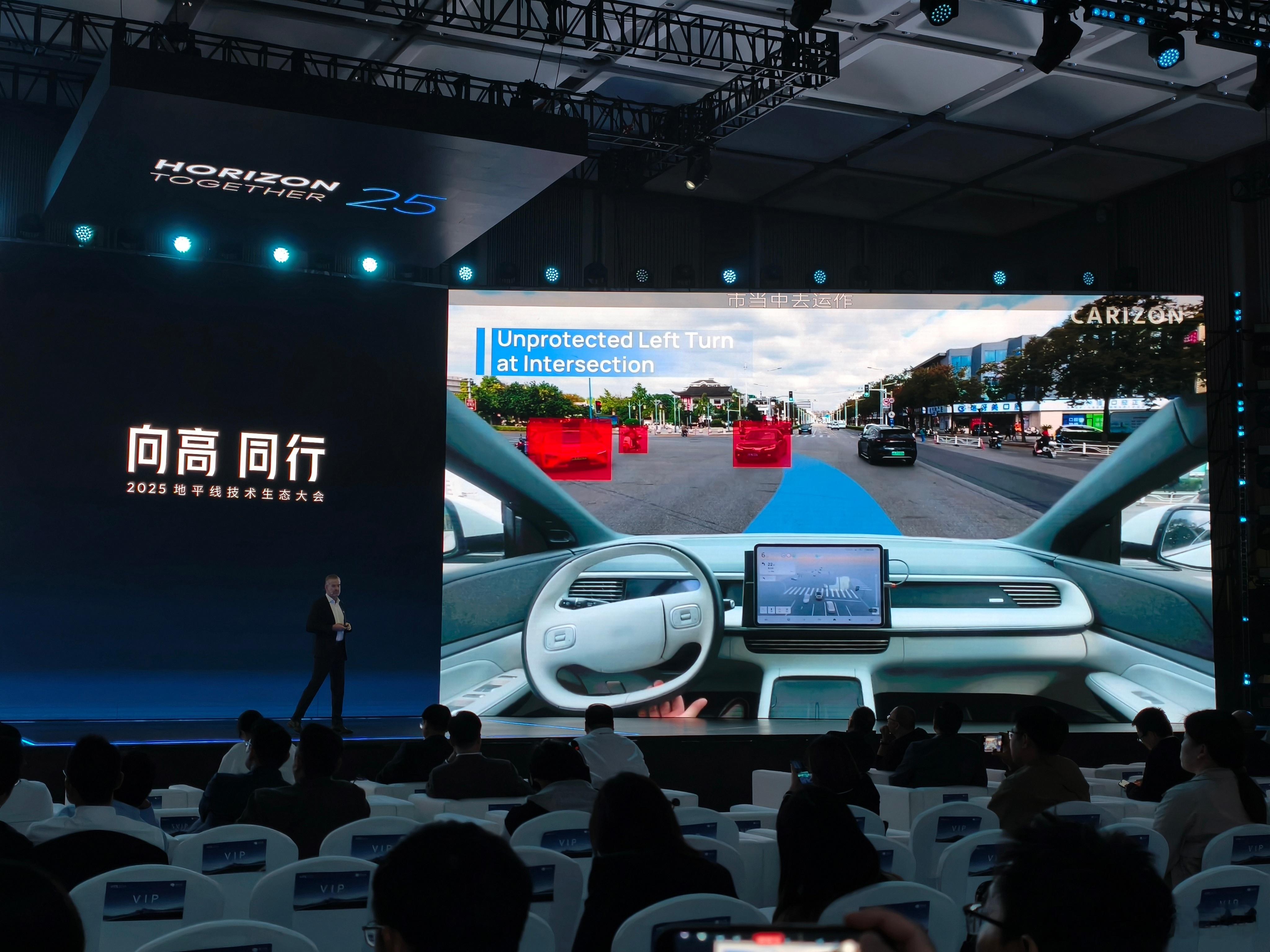 记录一下,大众酷睿程基于地平线芯片的几个方案。目前已经有的是基于与众 07 的单 J6M 方案,能实现基础的 L2+ 功能。后续会有基于单 J6M 的城区 NOA 方案,也会有基于单 J6P 的 Pro 版城区方案,还会有基于双 J6P 的,面向 L3/L4 的方案。现场还展示了基于小鹏 G6 改装的方案2025地平线技术生态大会