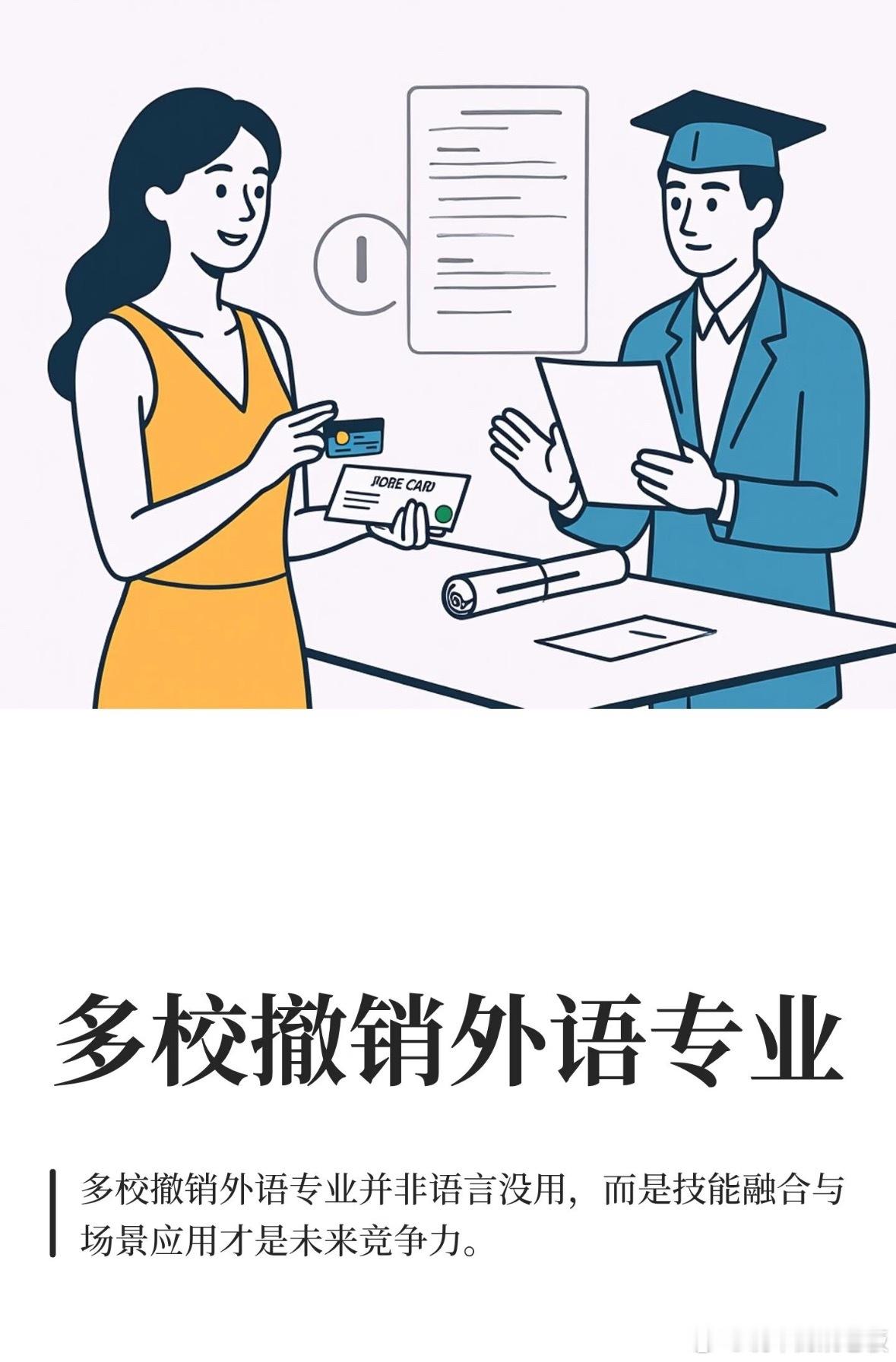 多校撤销外语专业多校撤停外语专业刷屏!中科大、华东师大等高校陆续撤销英语、德语等专业,硕士阶段多个翻译方向也停招。AI翻译冲击+就业遇冷是主因,外语类毕业生就业率和薪资均低于全国均值。但撤销≠淘汰!高校正推“外语+AI/财经/国际传播”交叉培养,转向复合型人才培育。语言作为文化桥梁的价值仍在,只是纯语言技能已难立足。你觉得外语专业还有“春天”吗?