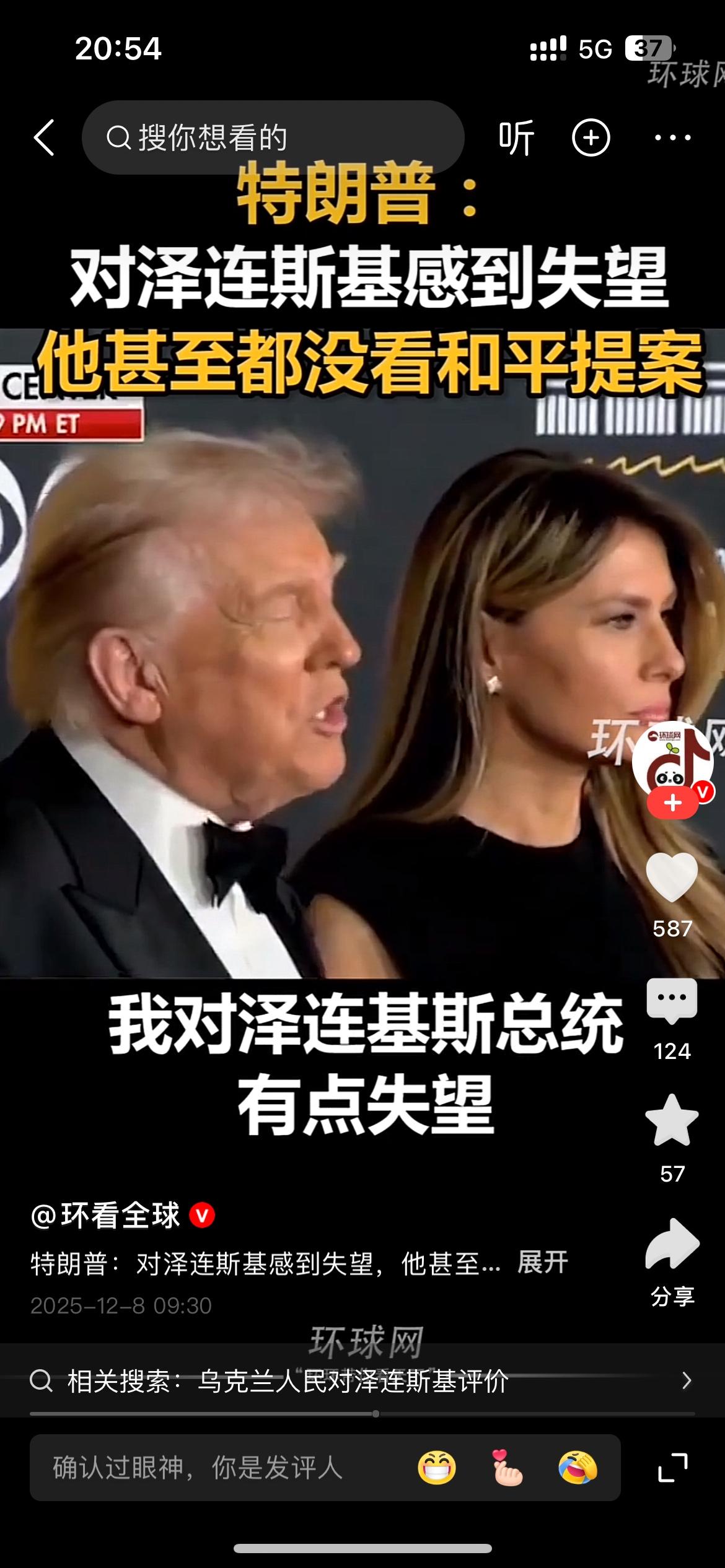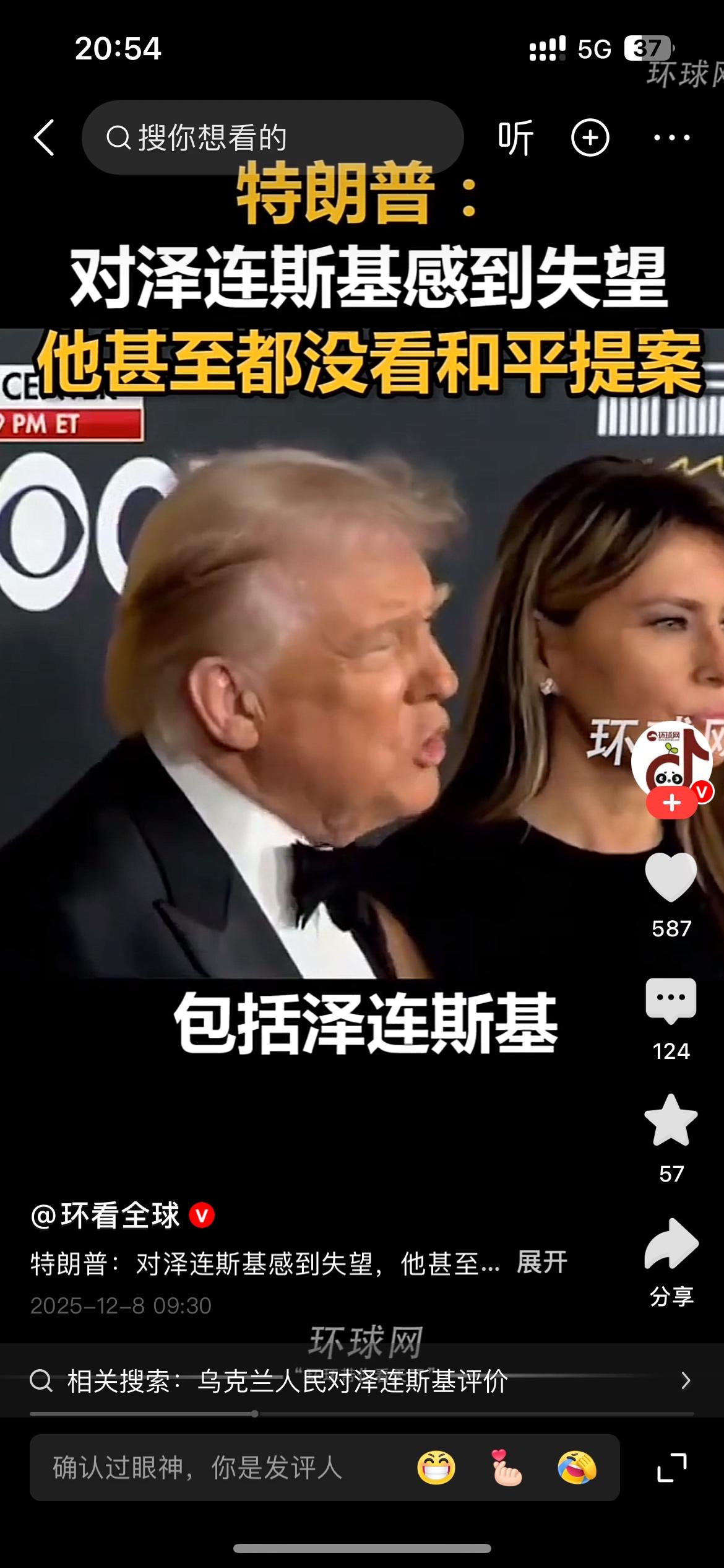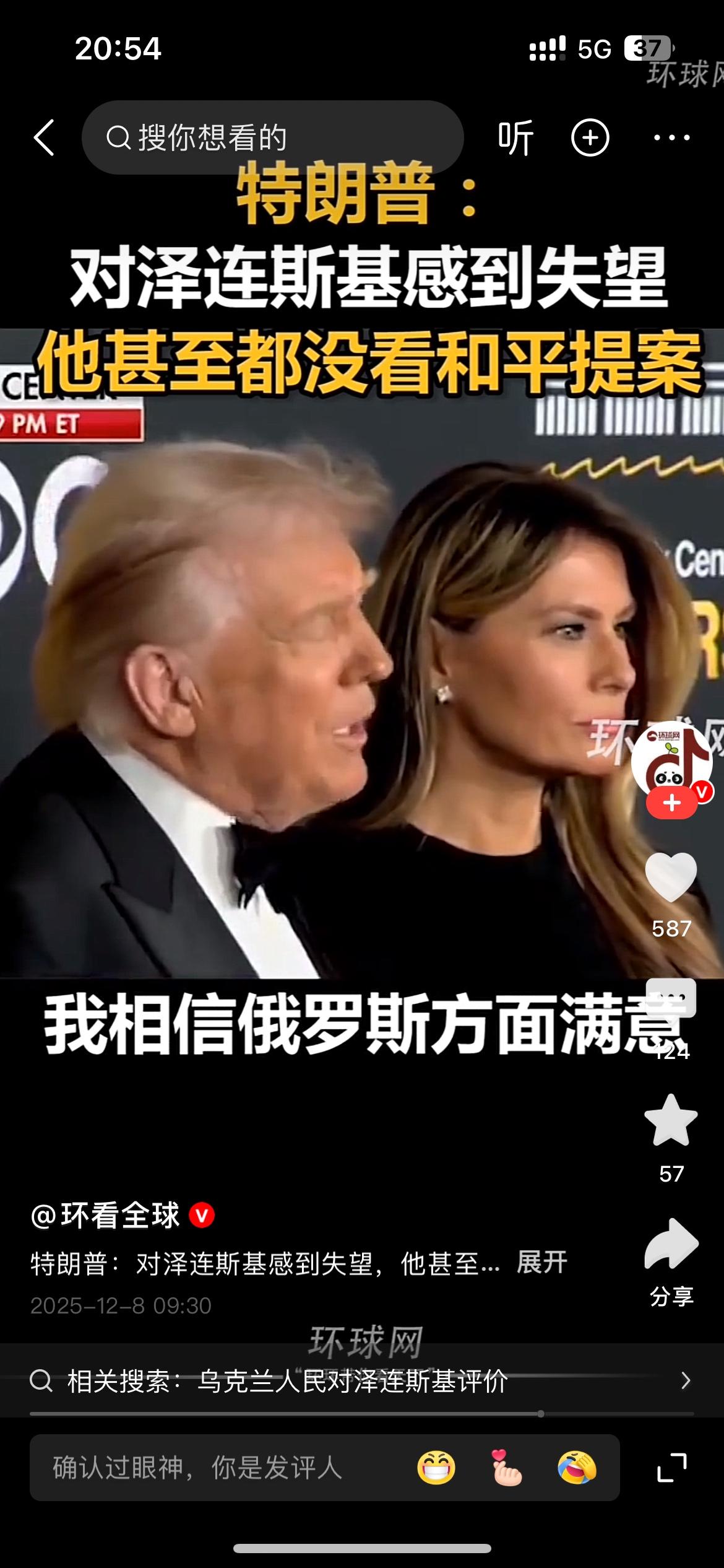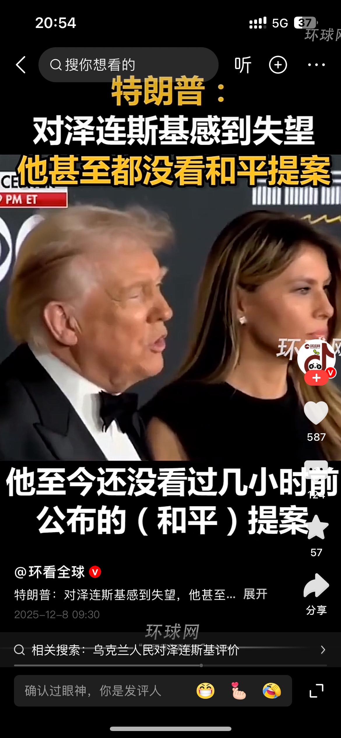 泽连斯基又惹美国总统特朗普失望了。 看来泽连斯基才是真正的硬汉,他竟然至今还没有看过几小时前公布的和平提案,这也太不给特朗普面子了! 乌克兰人民满意这个提案,俄罗斯也满意这个提案,但是泽连斯基是否满意这个提案,特朗普说不确定! 这么说来,泽连斯基的满意不满意对和平提案很重要!泽连斯基现在硬的,连特朗普也没有办法!