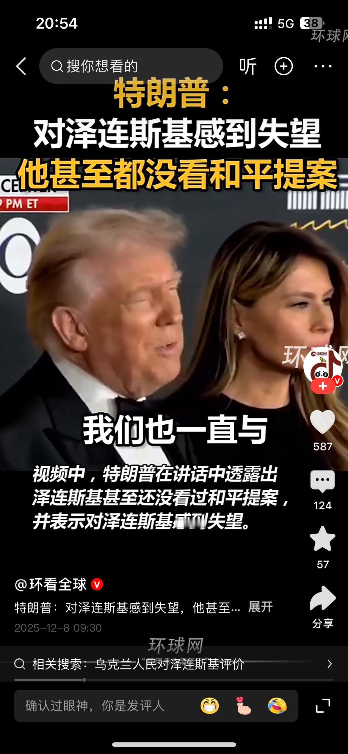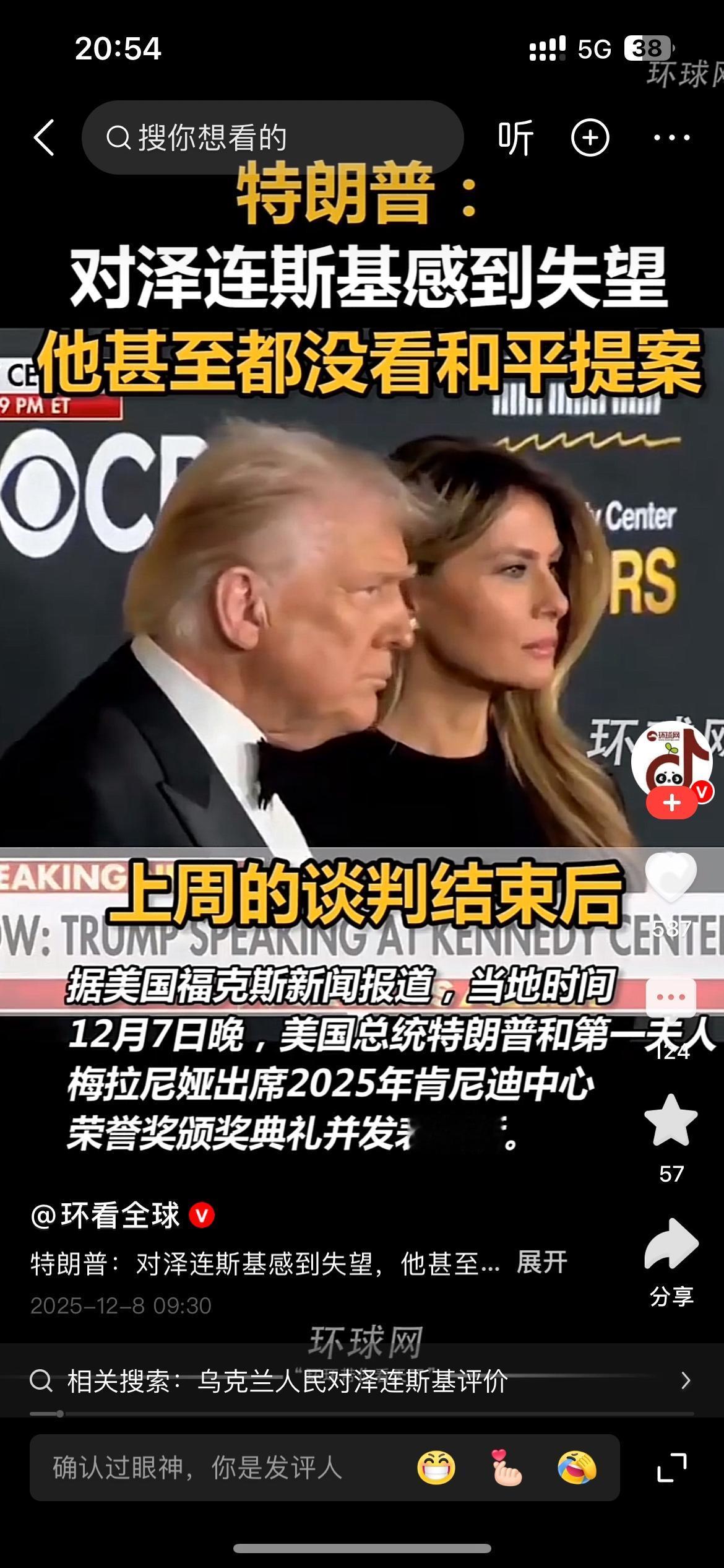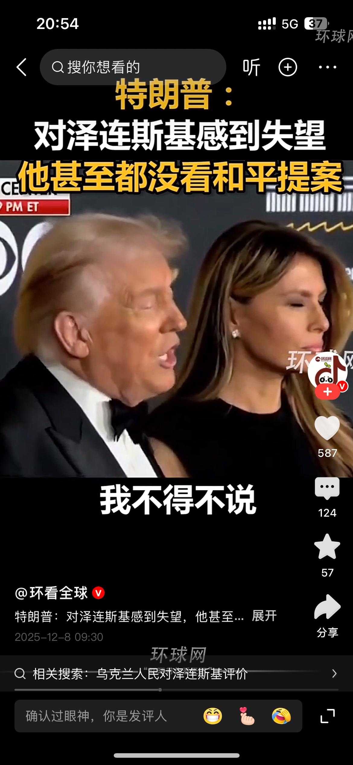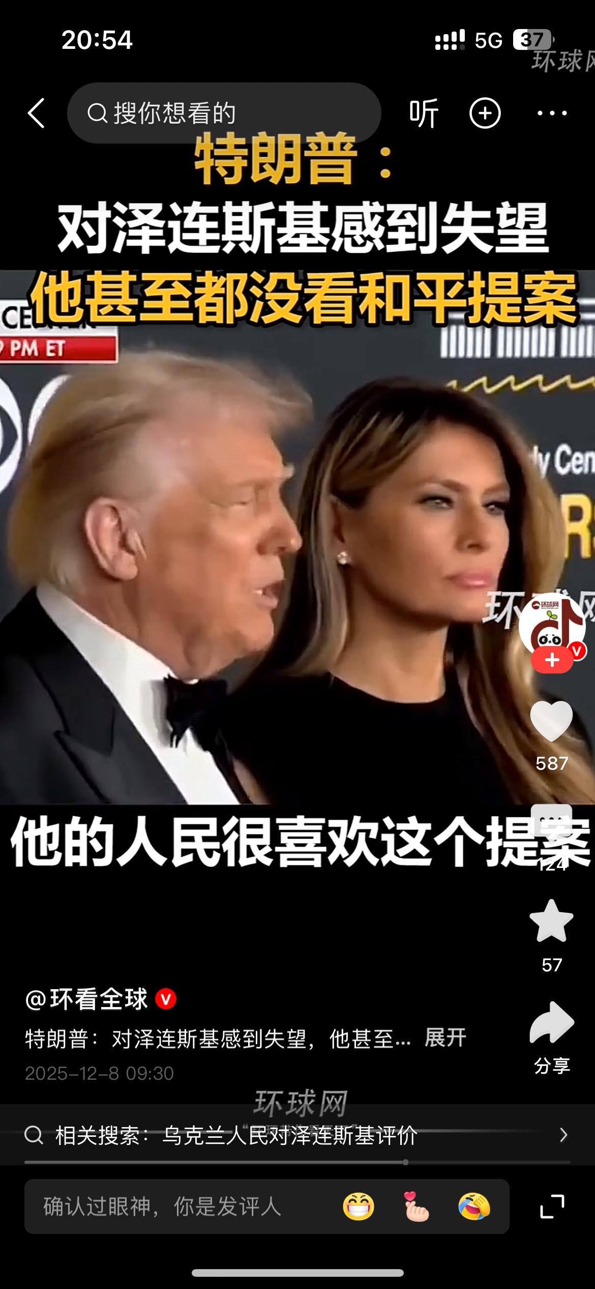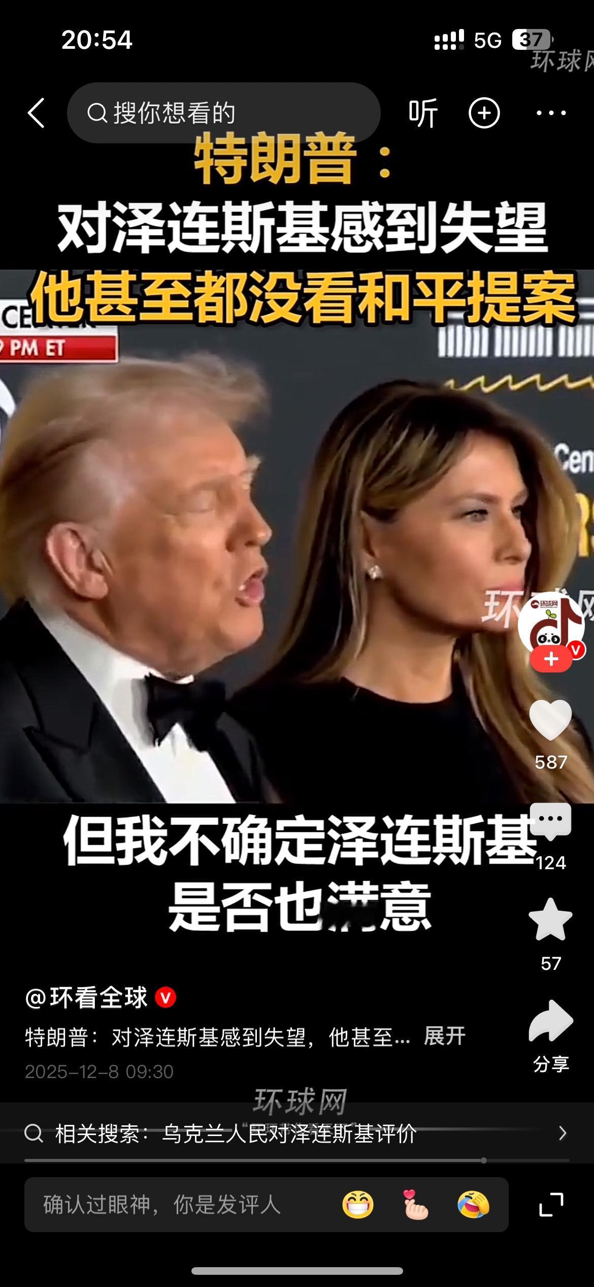 泽连斯基又惹美国总统特朗普失望了。 看来泽连斯基才是真正的硬汉,他竟然至今还没有看过几小时前公布的和平提案,这也太不给特朗普面子了! 乌克兰人民满意这个提案,俄罗斯也满意这个提案,但是泽连斯基是否满意这个提案,特朗普说不确定! 这么说来,泽连斯基的满意不满意对和平提案很重要!泽连斯基现在硬的,连特朗普也没有办法!