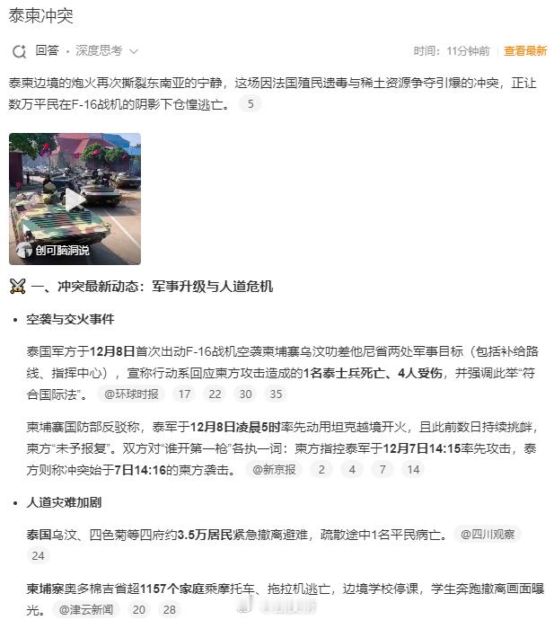 泰柬边境冲突现场画面 泰国方面今天动用了坦克、F16战机对柬方阵地进行打击,说明冲突事态扩大了,这次不知道怎么收场,还是忒朗普出面吗?