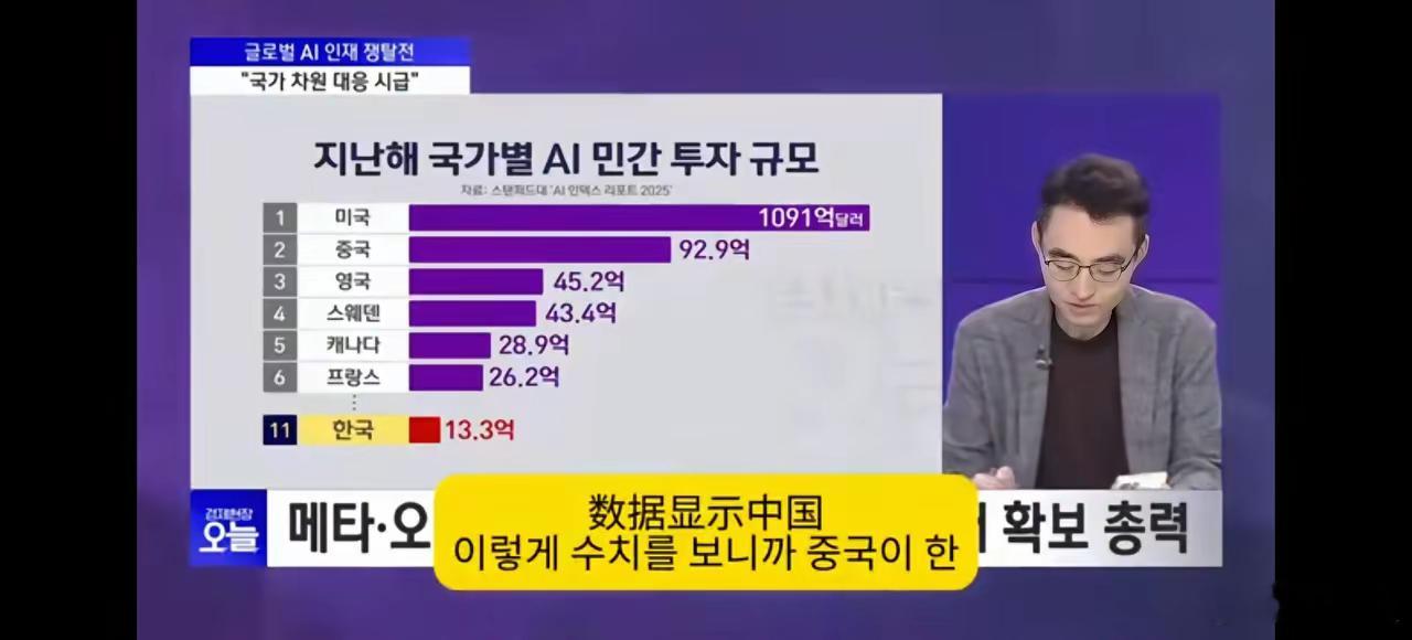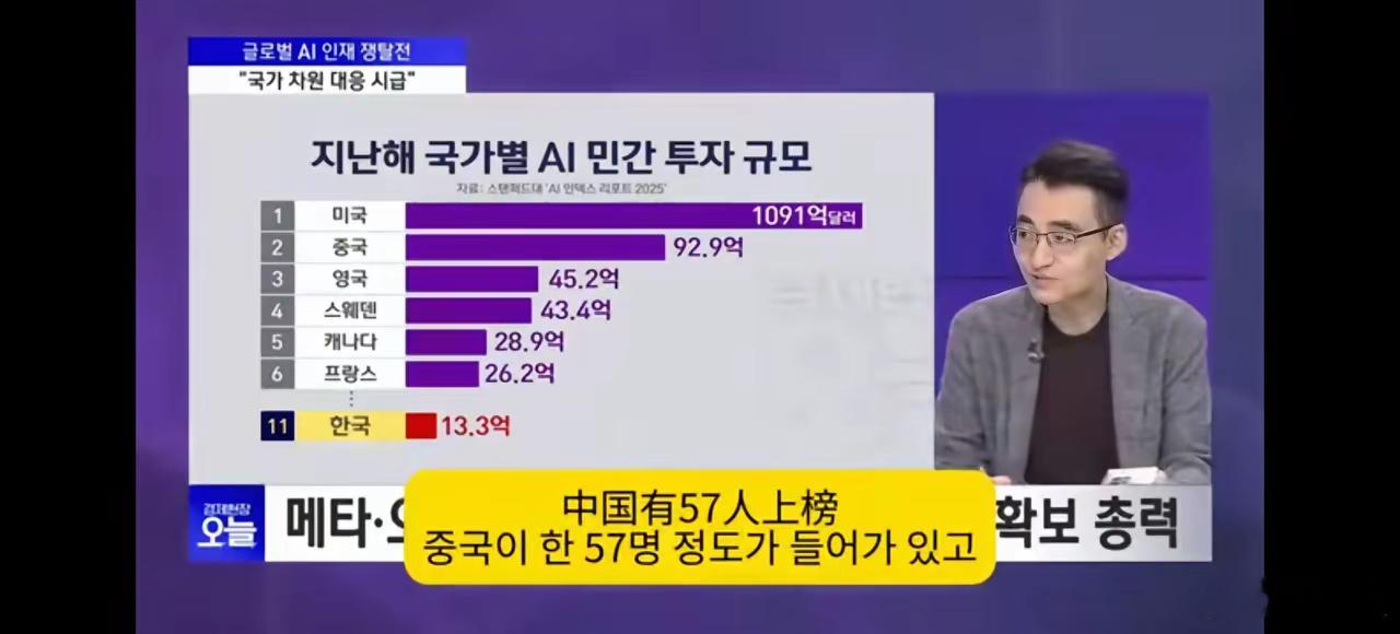 看来很多所谓发达国家已经放弃了与中美竞争的意愿,韩国人说,全球前100位人工智能顶尖人才,中国有57人上榜,美国占20席,他们说中美在人工智能领域断崖式领先,韩国即便跑到了第三名也没有意义。