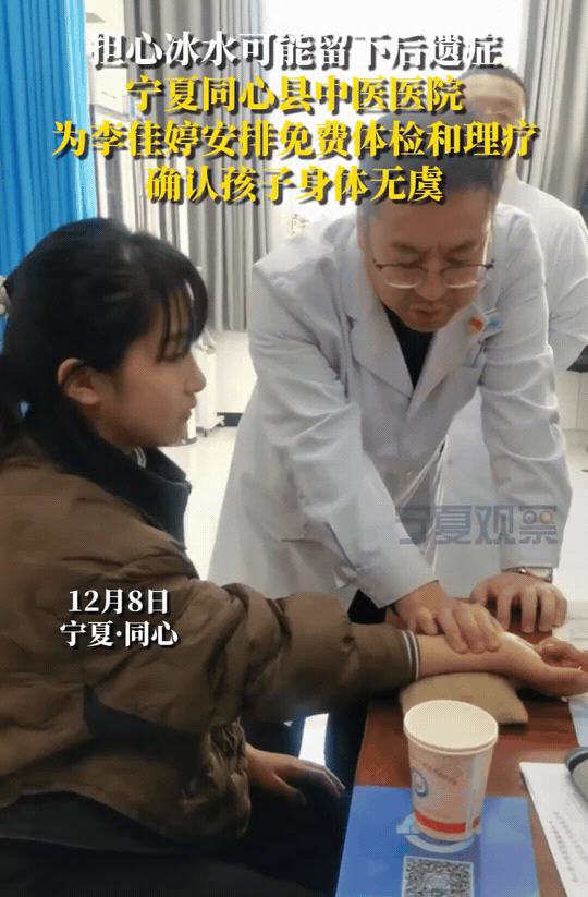 宁夏同心,对于冰窟救童的李佳婷来说,最有意义的奖励,不是一张奖状,也不是几千元奖金,而是对身体的全面检查,确认没有留下后遗症。 寒冷的冬天,4岁男童落入冰窟,初一女生李佳婷觉得自己体重轻一些,主动爬上冰面救人。但是,冰太薄了,她也掉进了冰水里。后来,她又穿着湿衣服回家。对于一个小女生来说,网友们都担心冰水对她身体造成影响,担心这个善良的孩子留下后遗症。 看到她的事迹,同心县中医院也给她安排了全面体检,并安排了中医理疗。经过检查,李佳婷的身体没有问题。这样关心李佳婷的朋友们也就放心了。 好人就应该有好报。善良的人就应该得到大家的关心。 网友说:“看到这个视频就放心了,看到小女孩救人的视频后就担心她寒气入体。” 还有网友说:“大力支持!这种事情发生了最起码体现了我们一个城市是有温度的,不会让帮助别人的人感觉心寒。让更多人主动加入到做好事,送温暖的行列中。”
