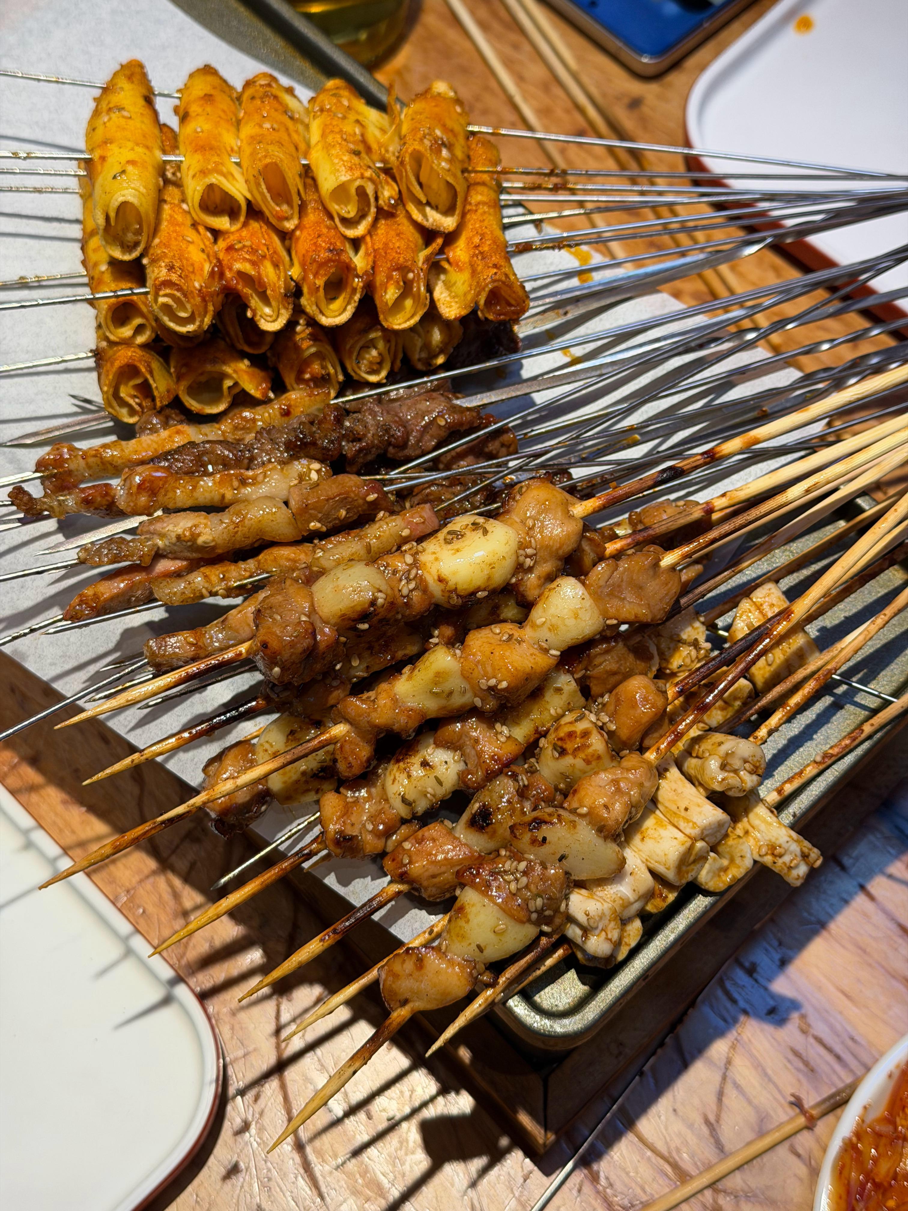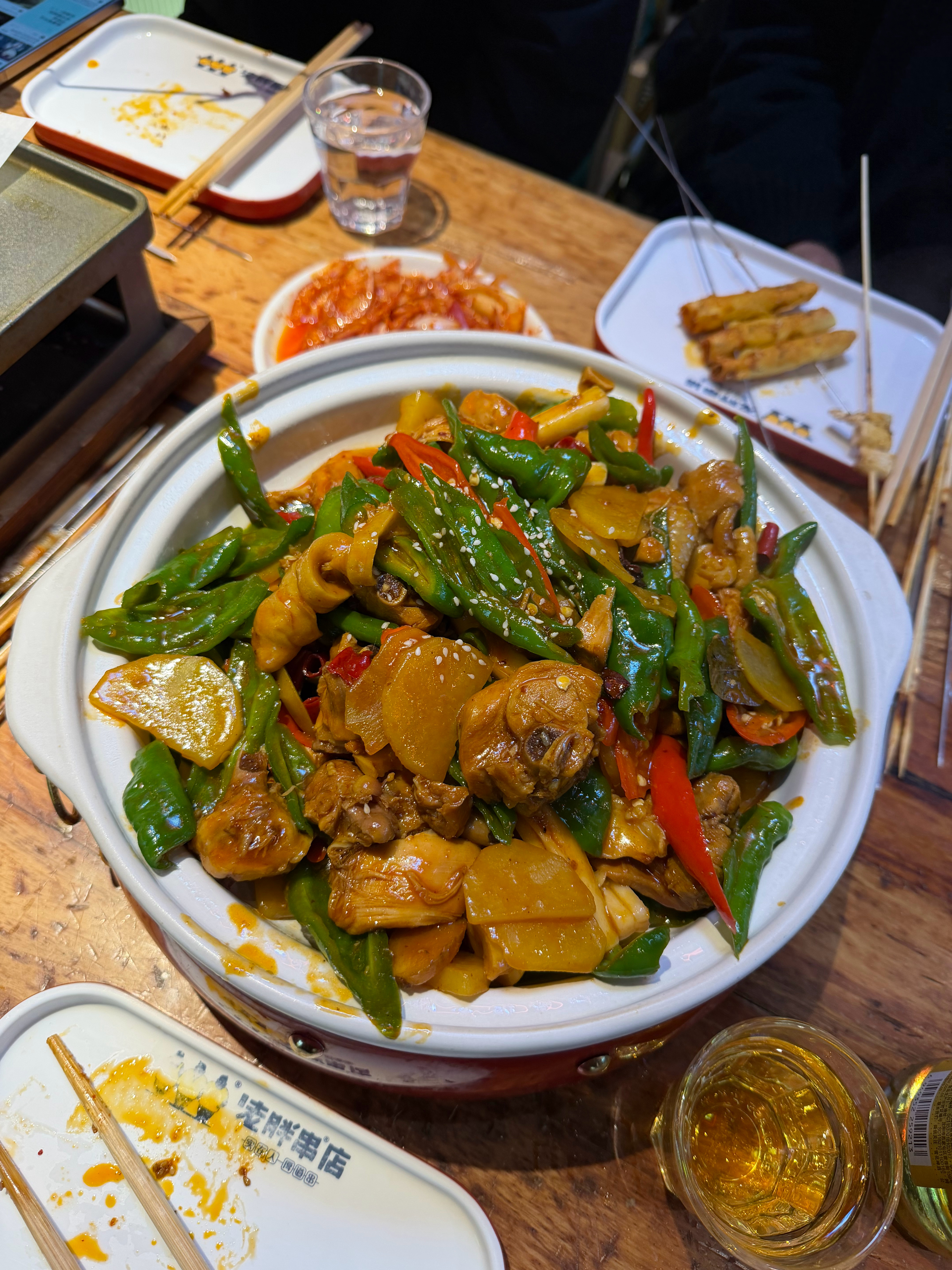 又来济南了,烧烤和炒鸡都得安排上但是我有个疑问,为什么炒鸡里有年糕和面筋,这个对吗???