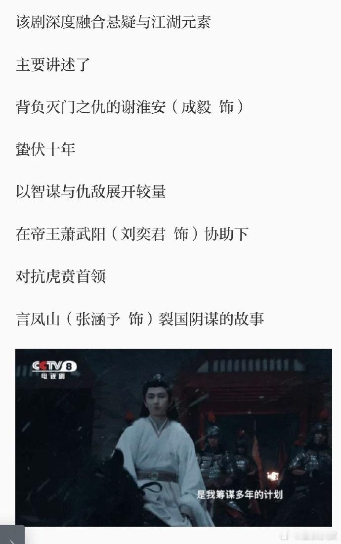 成毅长安二十四计登上学习强国学习强国发了成毅长安二十四计该剧深度融合悬疑与江湖元素,主要讲述了 背负灭门之仇的谢淮安(成毅饰)蛰伏十年,以智谋与仇敌展开较量,在帝王萧武阳(刘奕君饰)协助下,对抗虎贲首领言凤山(张涵予饰)裂国阴谋的故事