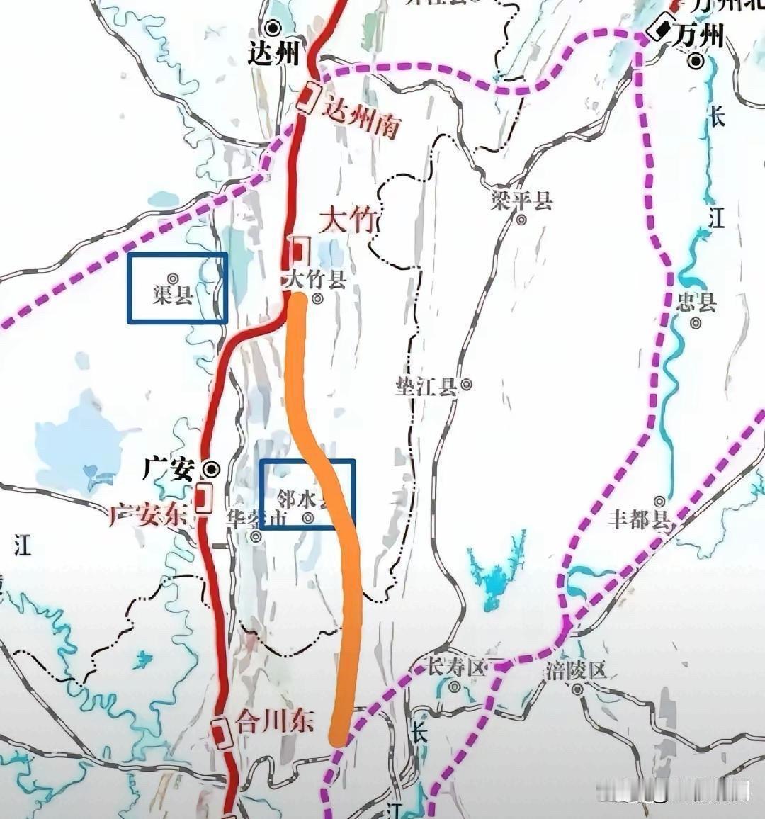 西渝高铁规划中,修建大竹 - 邻水 - 龙兴联络线(黄线)堪称点睛之笔。 这条线完美接入邻水,不仅打破邻水无高铁的困境,还成功连通西渝和沿江两条高铁干线,同时将西渝高铁引入江北机场和重庆北站,达成空铁联运,形成高效多赢的绝佳局面。 线路走向均为槽谷浅丘区域,施工难度低,可行性高。期待广大条友多多顶贴,助力这一规划早日成为现实