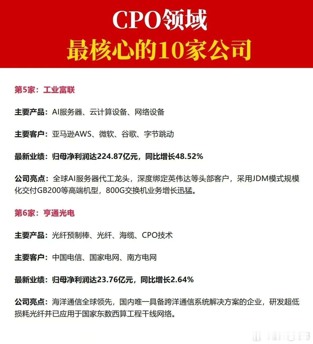CPO共封装光学十大龙头梳理!12月8日CPO概念板块领涨两市,板块大涨近5%,批量个股涨停或大涨。工信部明确支持高速光通信器件研发,A股CPO板块单日成交超1100亿元。AI算力需求推着光模块加速向800G/1.6T升级,直接拉动共封装光学产业链需求。CPO概念十大龙头值得关注!题材概念投资逻辑:CPO(共封装光学)是AI算力爆发下的关键硬件创新,通过光模块与交换机芯片共封装,解决高速传输中的能耗、延迟痛点。当前CPO板块部分龙头股出现MACD零上金叉信号,且处于量能放大阶段,叠加行业景气度上行,可重点关注业绩兑现能力强、技术壁垒高的标的。CPO概念十大龙头代表:光器件天孚通信、光模块中际旭创、光纤光缆亨通光电、光芯片士佳光子、光引擎华工科技……理财有风险入市需谨慎,资料仅供参考,不能作为投资依据。