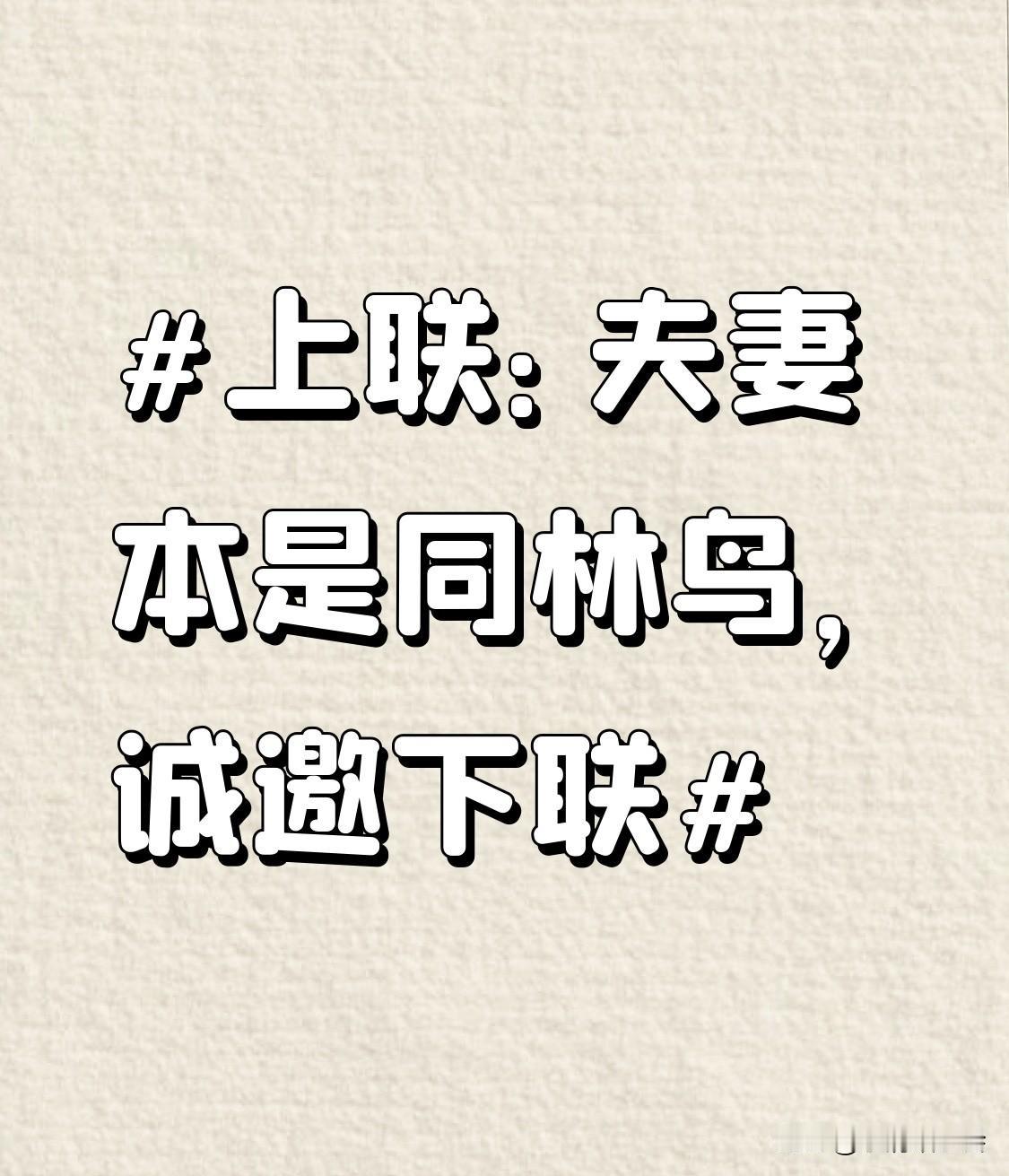 看到“夫妻本是同林鸟”这个上联,我脑海里瞬间冒出几个下联。可以对“大难临头各自飞”,这是很经典的搭配,形象地描绘出一些夫妻在困难面前的现实表现。 还有“鸳鸯原为比翼禽”,鸳鸯象征着美好爱情,和上联的夫妻对应,比翼双飞的寓意也很浪漫。 就像古诗里描绘的美好情感一样,我们也希望生活中的夫妻能像比翼的鸳鸯,携手度过一生,而不是大难临头就各自飞。