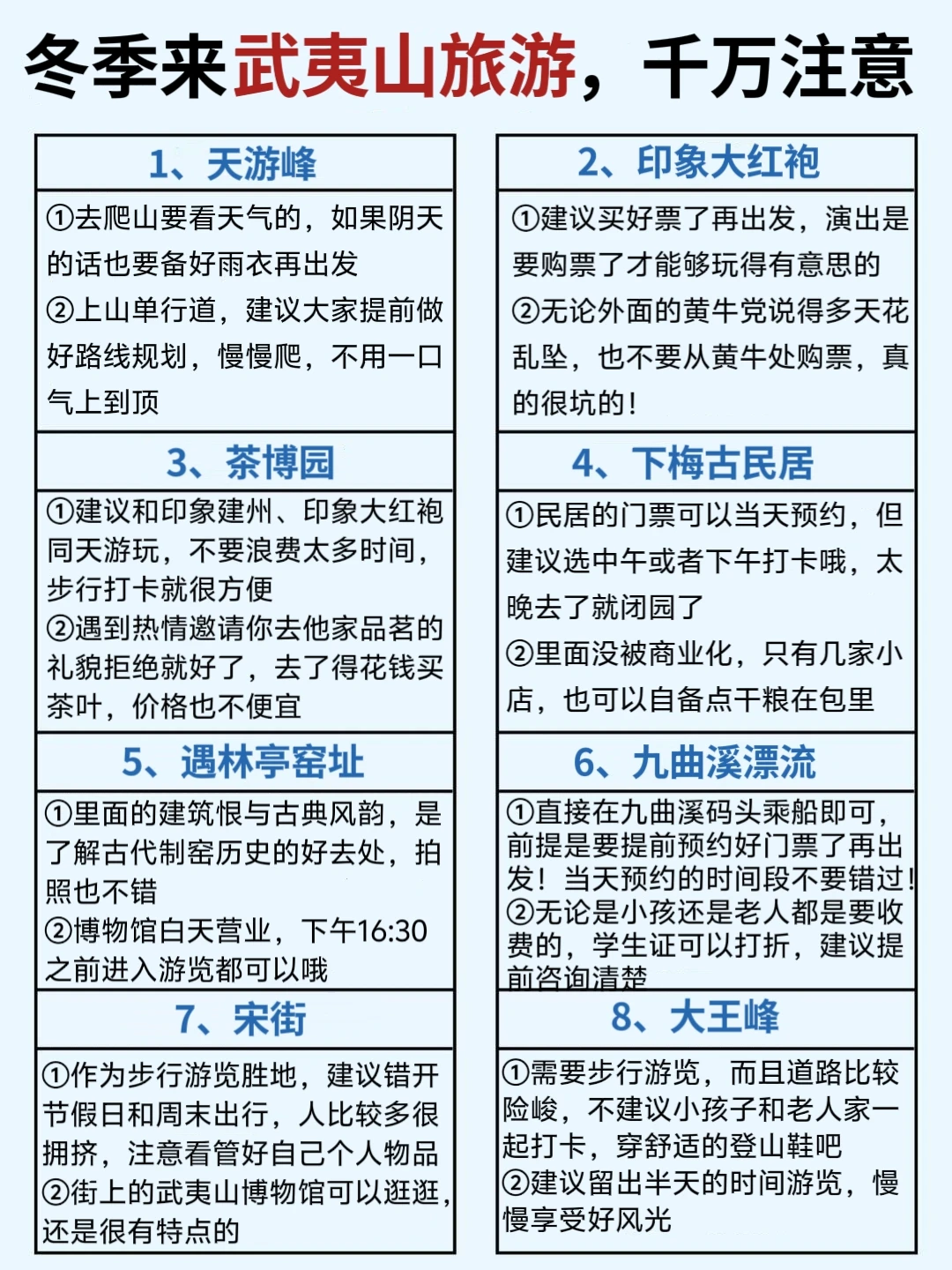 🌳建议1:寒假出游武夷山一定也要记得错峰避开节假日、周末等时间段,避免遇到人流量高峰期