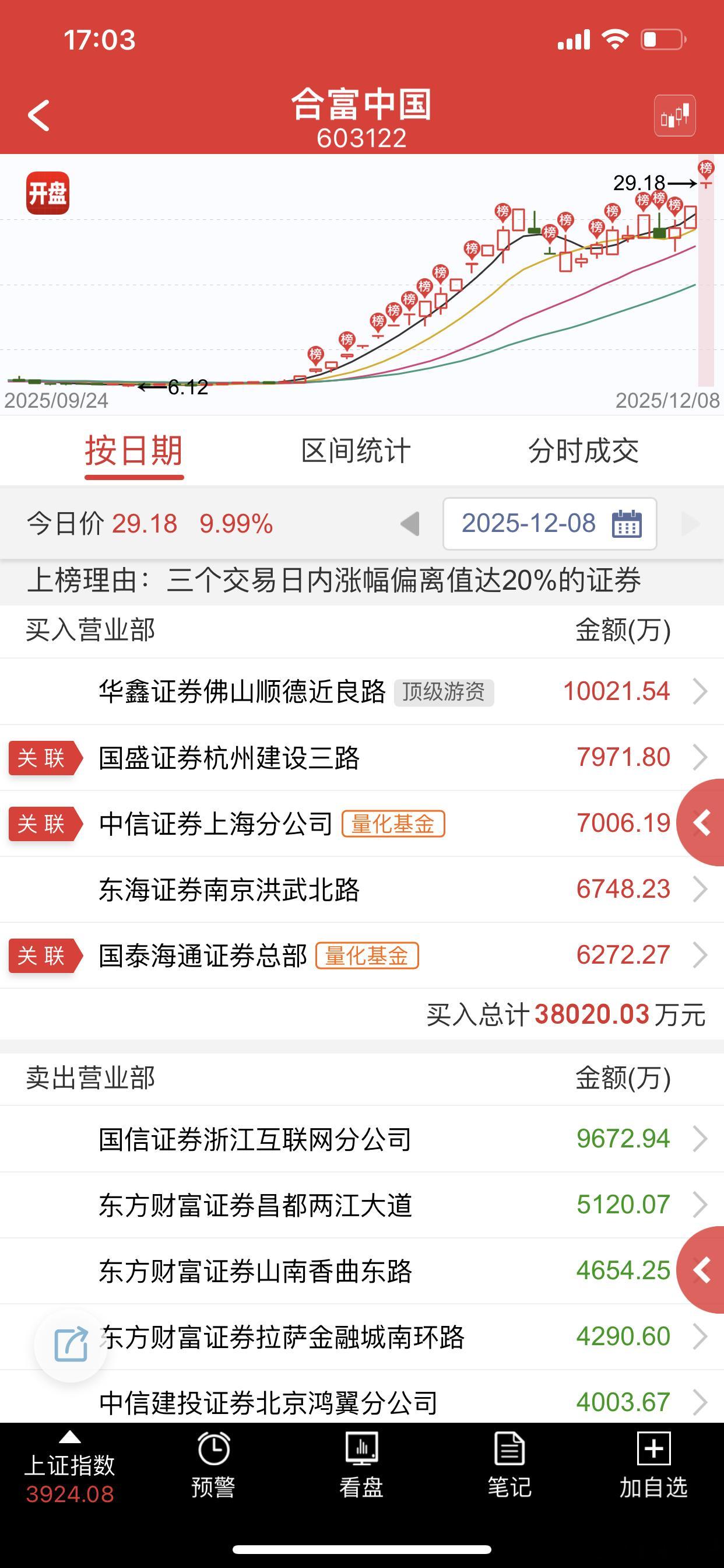 12.8十大技术交易热门股票点评!1、航天发展:高位十字星,小心出货2、实达集团