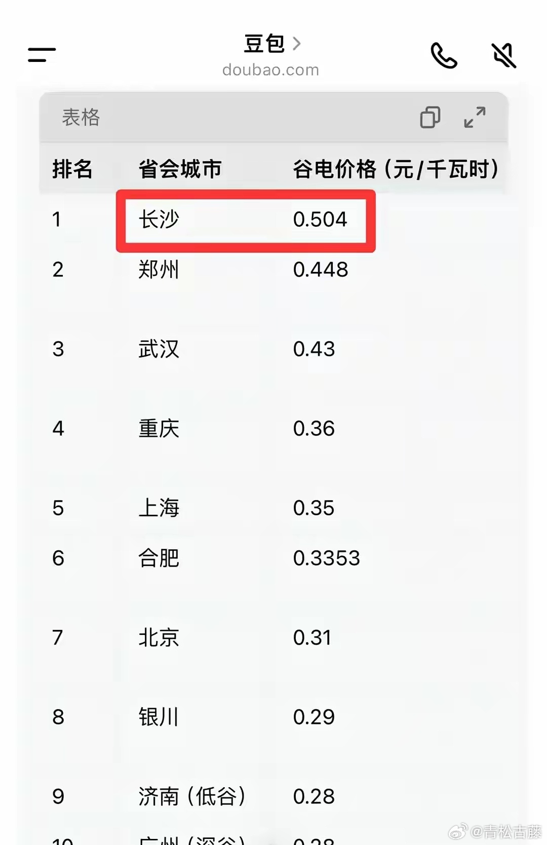 长沙低谷电价居然全国遥遥领先?各位下面数据对吗?