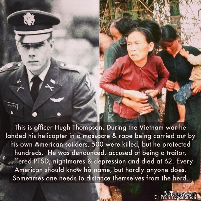 休·汤普森二世,美国陆军飞行员,他驾驶直升机降落在士兵和平民之间,阻止了美莱村大