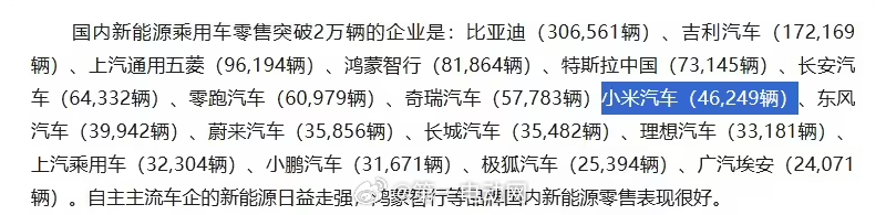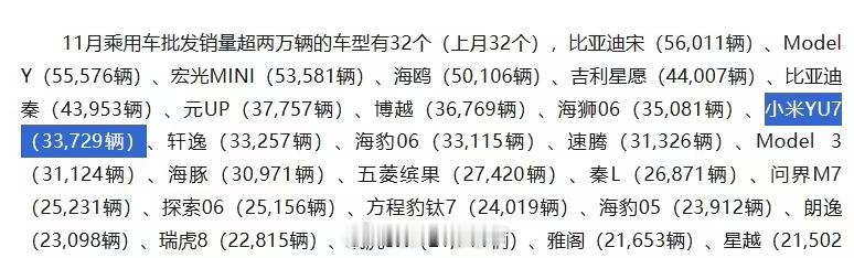 今天在乘联分会今日公布的 2025 年 11 月份全国乘用车市场分析中,看到了小米汽车新能源乘用车零售 46249 辆、YU7 车型批发销量超三万辆(33729 辆)小米汽车新能源汽车