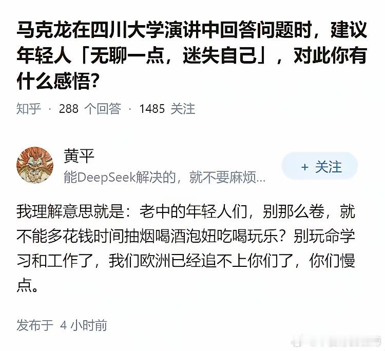 马克龙在四川大学演讲中回答问题时,建议年轻人「无聊一点,迷失自己」,对此你有什么感悟?