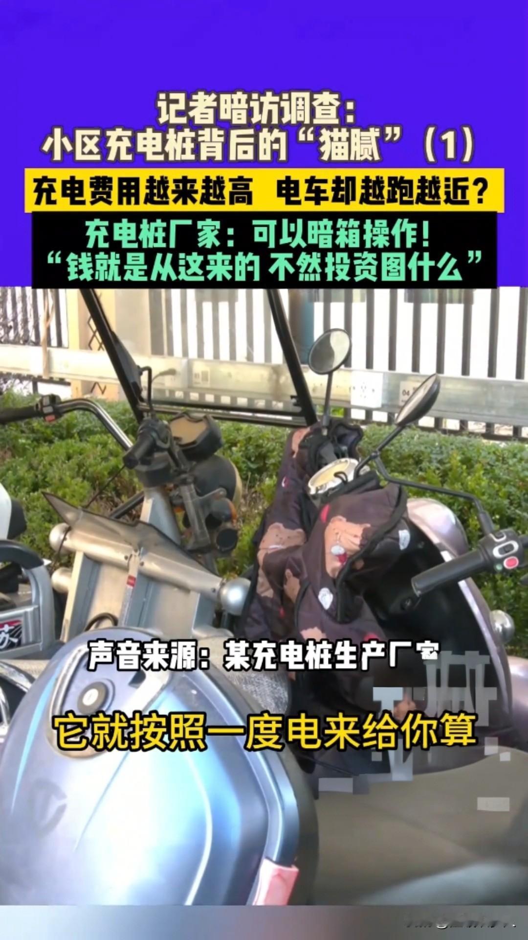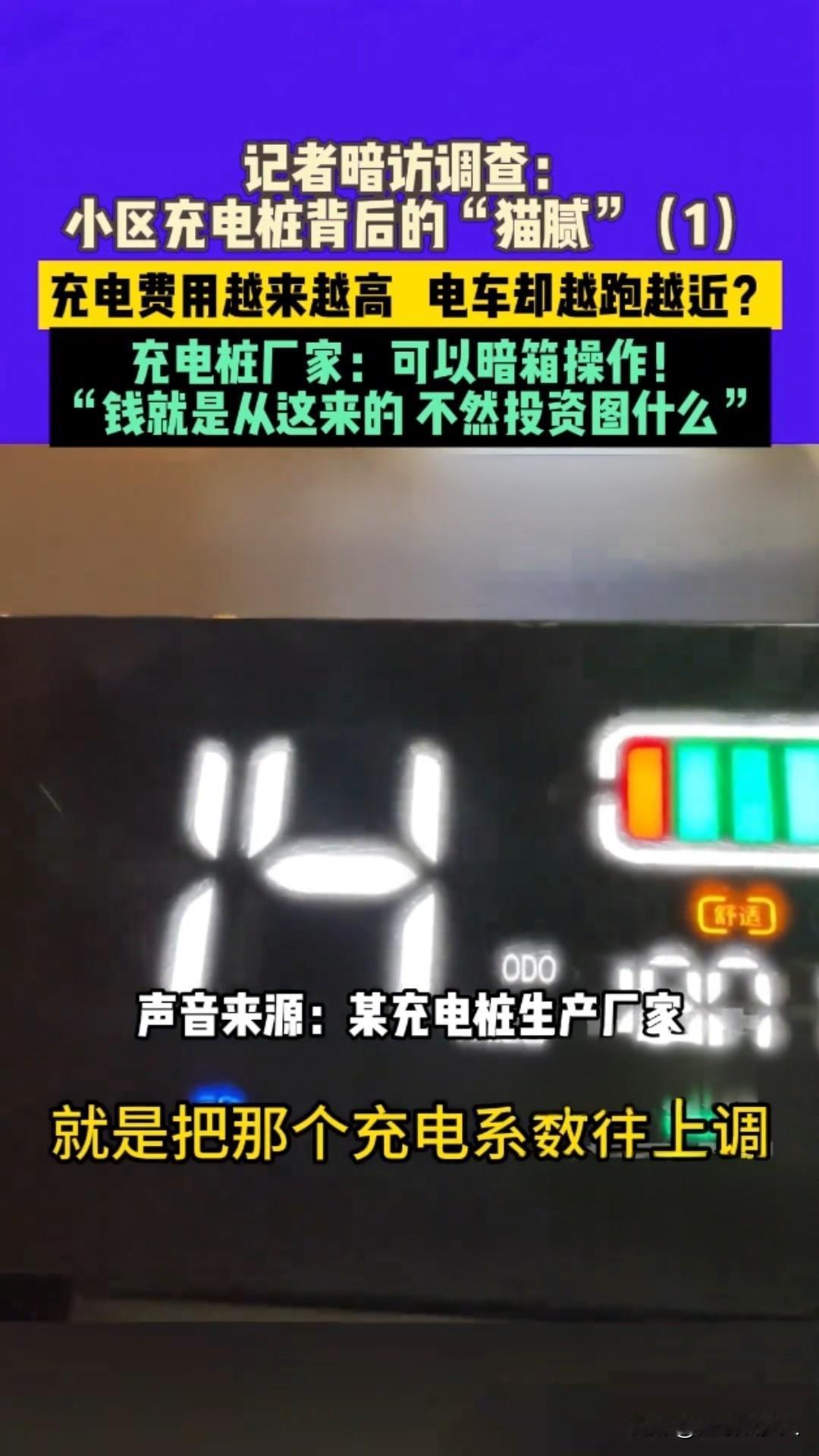 太坑人了!全国多地电动车用户发现,扫码充电桩充满电后续航竟比家充少一半!新车宣称跑80公里,实际只跑40公里,费用翻倍却越充越虚。网友曝光后台可调充电系数:电量偷偷减少,费用照收不误! 天气温度骤降 ,骑车上班十几分钟路程,来回也就20多分钟路程。每天都得充电,这是咋的啦?今天刷到视频,终于真相大白! 隔壁的王叔叔,花大几千买了辆新电动车,卖的时候问好,说是续航80公里,可每次用小区扫码充电桩“充满”后,跑不到40公里就断电了! 更怪的是,同辆车在家充电能跑50公里,公共电桩充完20公里就趴窝。“车显示满电,可一上路就掉格,充了三块多钱还不如自家充两块的量!”他指着充电记录一脸憋屈。 难道车子电池出问题了吗? 王叔叔直奔维修店。师傅听完却摆手:“最近天天有人来问!你回家充一次试试?” 回到家后,马上充上电,一看,续航恢复正常了。 维修工透露内幕:“充电桩能在手机后台调系数——把功率一降,显示‘充满’实际电量少三成,钱照收!” 类似遭遇正集中爆发。李女士发现充电费从2元涨到4元,续航反而更短:“充一晚上,骑五分钟掉两格电!” 网友吐槽:“怀疑过车、怀疑过电池,谁会想到充电桩动手脚?” 还有晒出证据:扫码小程序里藏着的“充电效率”设置栏,默认值被调低20%。 为了寻求真相,终于有人说出实情了!某充电桩公司员工私下直言:“不调系数怎么赚钱?投资几十万装设备,难道做慈善?”他演示后台操作:手指一点,充电量虚标即刻生效。“用户看不到进度条,以为‘自停’就是真充满。” 要我说,这哪是充电桩?简直是“吞电兽”!老百姓省吃俭用买辆车,充电还得跟黑箱算法斗智斗勇。下次扫码前记住:能家充就别在外当冤大头,要是非得用公共桩——瞪大眼睛看紧电量,别让钱包和电瓶一起缩水! 你遇到过电动车“饿肚子”吗? 充电桩充电价格充电桩收费 充电桩收费乱象 冬季生活打卡季 (信息来源于河南民生频道)