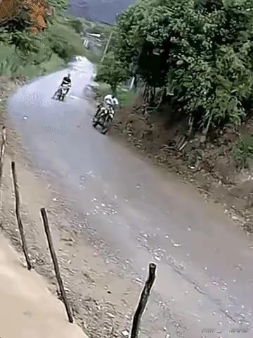这就是弯道超车的下场! 千万别以为弯道超车是什么机会,抓住了是机会,抓不住就没命…… 上一秒还庆幸终于有机会超过老大,结果,速度太快,把握不住,咵咔连撞三根木桩,脑袋一歪倒下了,鞋子甩了出去,大概率够呛了…… 刚才还玩儿的爽,转眼赴黄梁…… 你说值当不值当? 儿子没了爹, 媳妇儿没了夫 父母没了儿 叫天天不响 叫地地不响 拿命来耍酷 就是这下场~~
