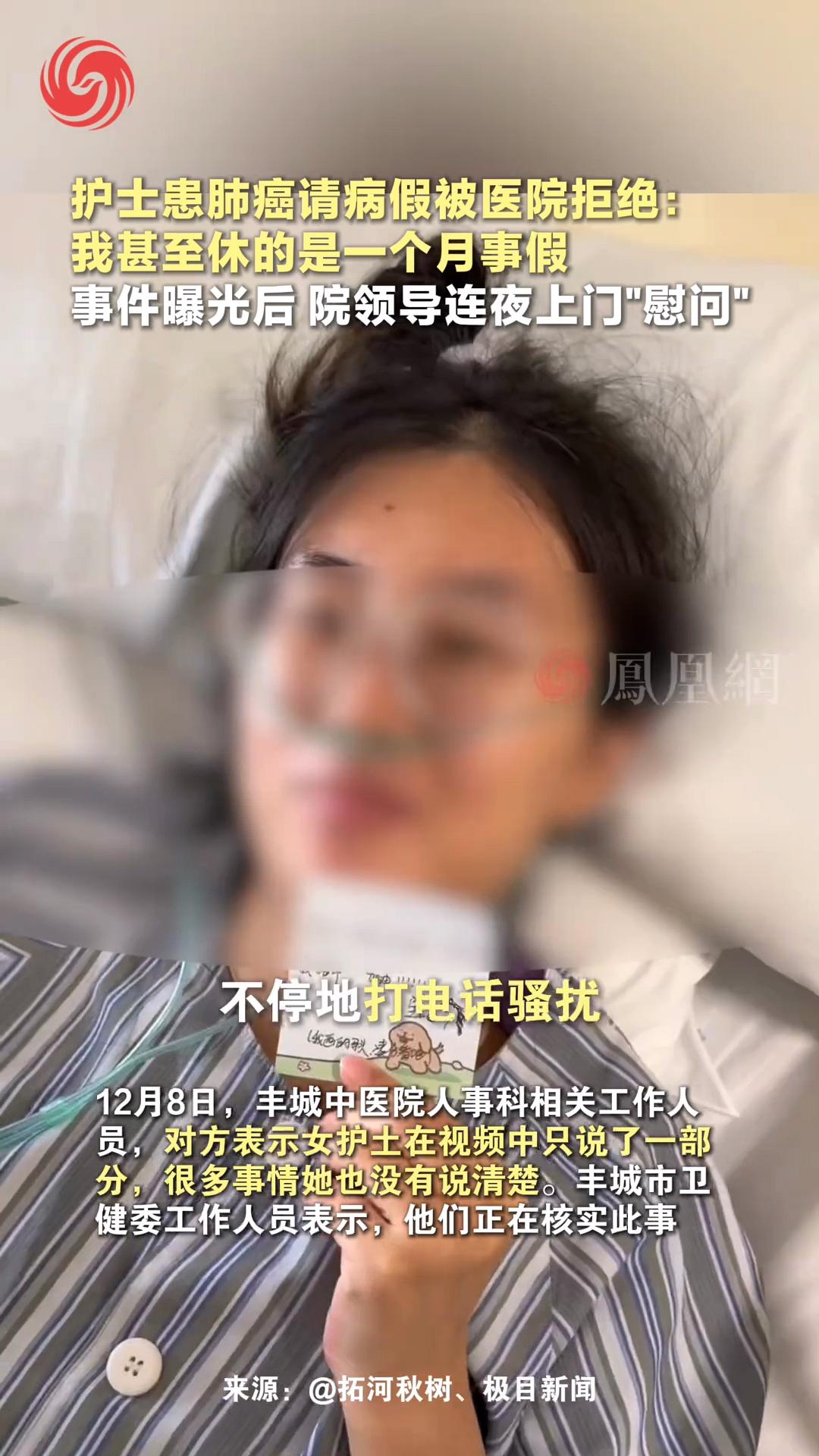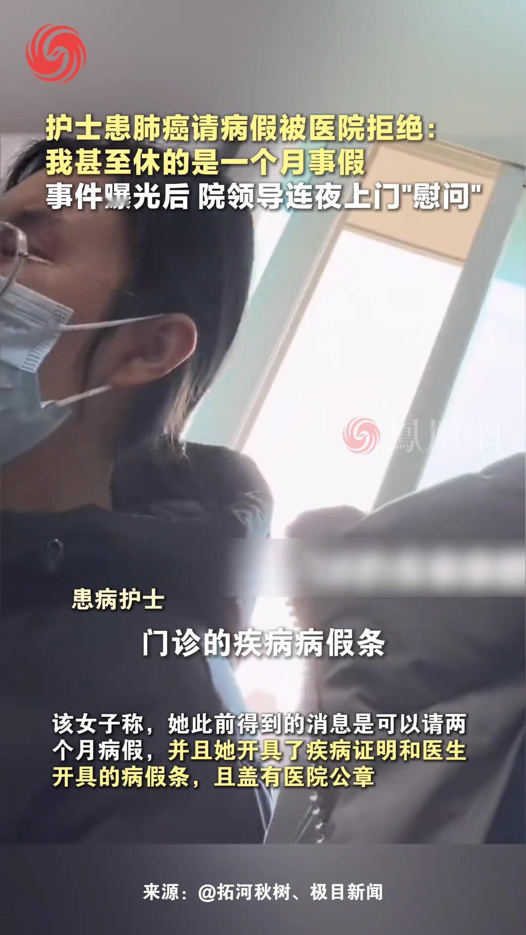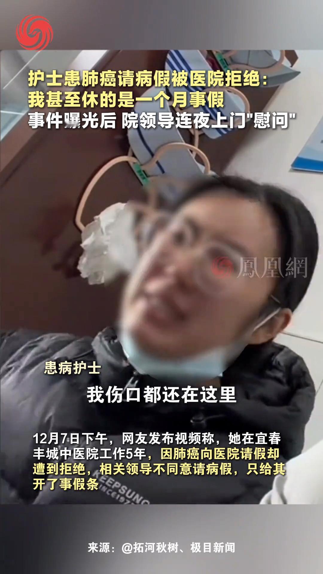 江西宜春的一家医院,一个工作5年的护士得了肺癌,向医院请病假,居然被拒绝,还把她狠狠批评了一顿,真的是震碎了三观啊! 这名护士在医院工作5年了,前不久患了肺癌,需要住院治疗。她开具了疾病证明还有医生出具的病假条,然后向自己工作的医院请假。 她想请两个月病假,结果让她始料未及的是,医院居然不同意,不允许她请病假,说只能按照事假去请假。 更夸张的是,她科室的估计主任还打电话骂她,说她不应该去向医院申请病假。 她非常委屈,自己明明符合病假的要求,结果医院却不同意自己请病假,她将此事告诉了老公。 他老公也是气的不行,于是在社交平台上发布了一个视频,讲了此事的前因后果。 然后反转出现了,医院的领导突然变的非常热情,大半夜的还要来护士家里慰问,一天到晚不停打电话。 护士的老公直言,你们按照正常的制度批准病假就行,不用来家里了。他称医院并不是关心员工,而是这件事在网上发酵了,他们怕了。 目前,当地卫健委表示已经介入,正在调查此事。 说实话,医院也算是企业了,任何一个企业,在自己的员工得了癌症这种重疾的时候,居然不允许员工请病假,只同意请事假。 这样的企业是怎么考虑的?想解约成本?压榨员工? 如果企业连最基本的温情都没有,那这样的企业注定走不长久,迟早会被淘汰!