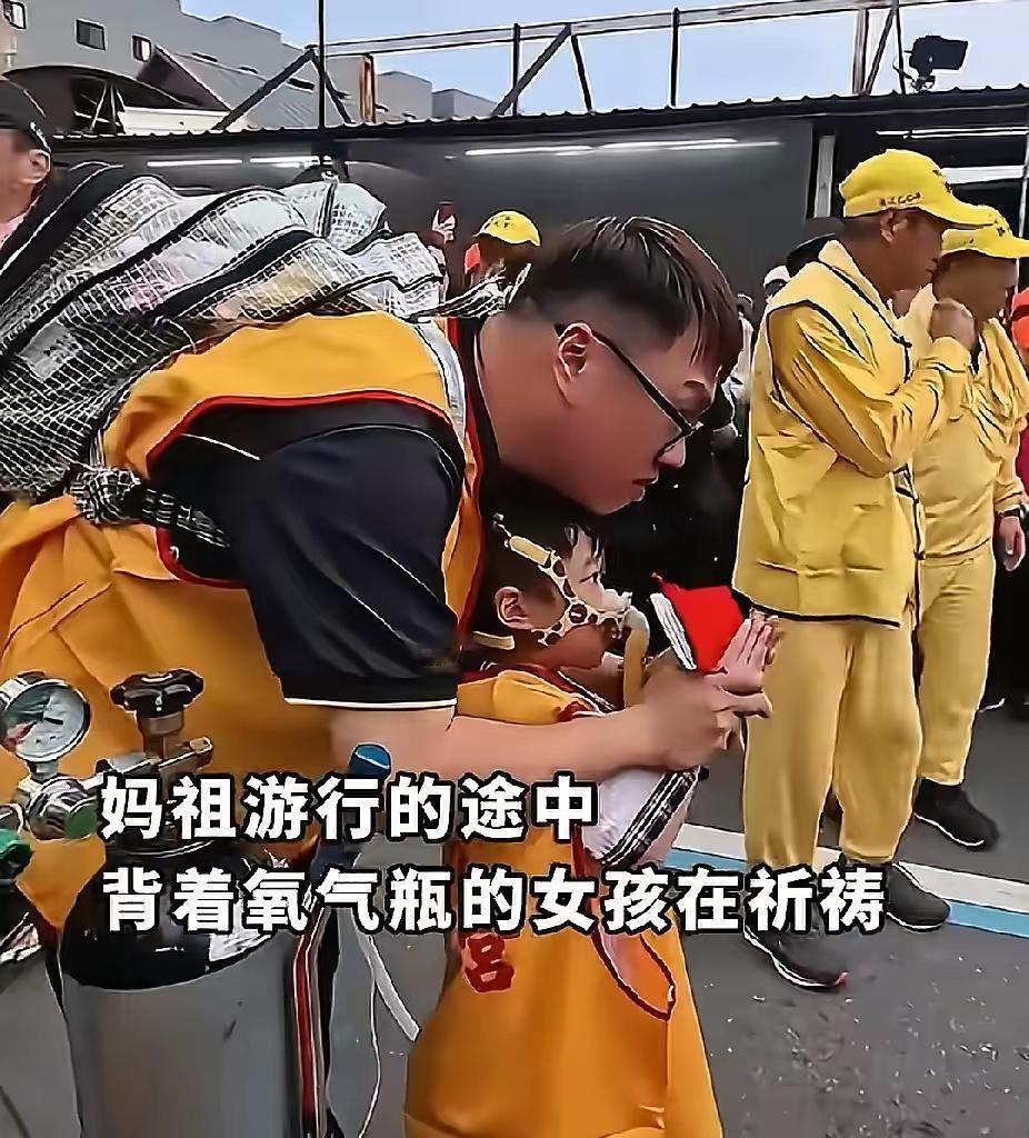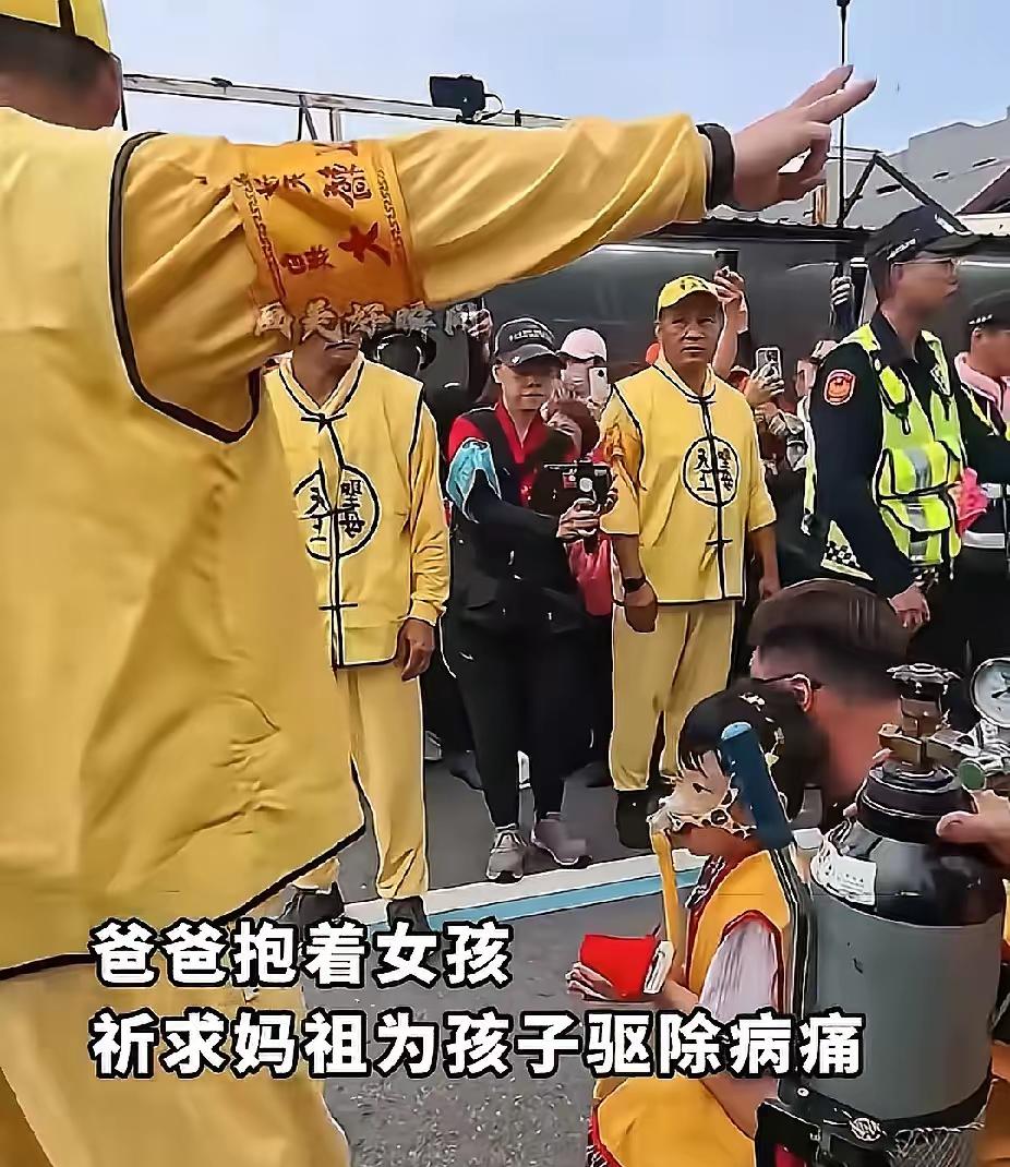 当医学解决不了的疾病,信仰或许是最后一道希望!妈祖游行途中一位父亲带着3岁的小女孩,背着氧气罐,不远千里来祈祷,当众人抬着妈祖金身经过人群时,爸爸抱着女儿跪在路中央祈求妈祖祈福,抬妈祖的爷爷跪下扶着女孩的手让妈祖离女孩更近一点!抬轿子的小哥曲膝用力只为让女孩离妈祖更近一点!整个过程1分多钟,抬轿子的小哥累的满头大汗,身体发抖! 这一幕看了让人心里酸酸的。你想啊,一个3岁的孩子,背着氧气罐,说明身体状况肯定不好。当爹的带着她不远千里赶过来,一路颠簸,心里该多煎熬。医学上可能已经没什么好办法了,不然谁愿意把最后的希望寄托在这些上?这不是迷信,更像是走投无路时,想抓住点什么的本能。 游行的队伍本来是热热闹闹往前挪的,到了这对父女跟前,所有人都放慢了脚步。抬妈祖金身的爷爷,一大把年纪了,直接跪下扶着孩子的手,就为了让妈祖离孩子再近点。还有抬轿子的小哥,曲着膝盖使劲往下压,那姿势得多累?一分多钟,满头大汗,身体都在抖,可谁也没松劲。他们图啥呢?或许就是见不得这人间疾苦,想帮着圆一份念想。 周围的人看着这场景,估计也都静下来了。没人催,没人闹,就那么默默看着。这时候,信仰好像变成了一种默契。对父亲来说,这是给孩子求一份平安的希望;对抬轿的人来说,是帮这份希望多靠近一点;对围观的人来说,是心里那份对苦难的共情。 有人可能会说,这有啥用啊,还不如去大医院。可你没站在那个父亲的位置上,体会不到那种叫天天不应、叫地地不灵的绝望。当所有医学手段都试过了,剩下的可能就只有这份信仰能让他稍微喘口气,觉得“我还在为孩子努力”。 这事儿里,最打动人的其实不是妈祖显灵与否,而是人与人之间的那份善意。素不相识的人,因为一个父亲的祈求,愿意停下脚步,费尽力气去成全一份渺小的希望。这种善意,比任何形式的信仰都更实在。 不管最后结果怎么样,这一刻的温暖,或许能给这对父女多一点力量。生活有时候就是这样,难到极致时,一点光就能让人撑下去。 各位读者你们怎么看?欢迎在评论区讨论。