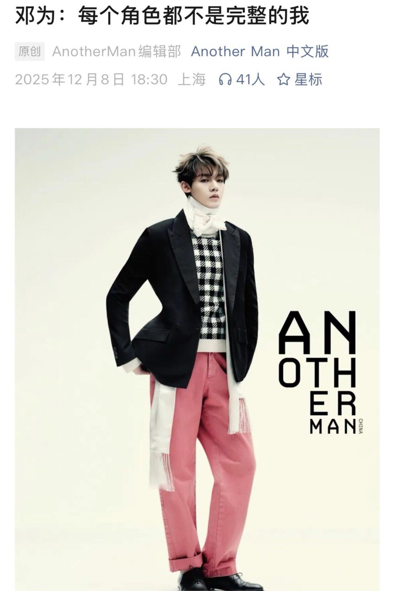 刷到邓为微博开屏,粉色西装好帅气