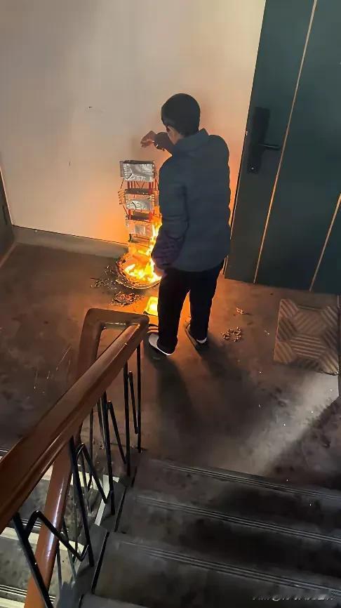 大妈在楼道里烧纸钱祈福,这种方法合适吗?下班回家,闻着楼道里有一股烧焦的糊味,还以为哪里线路老化,顺着味道寻去,看到一位老太太正在自家门口烧这个纸钱还有一串什么东西,没见过。 想烧可以在自家里,在楼道里做,大家心里会怎么想。 不知道怪瘆人的。