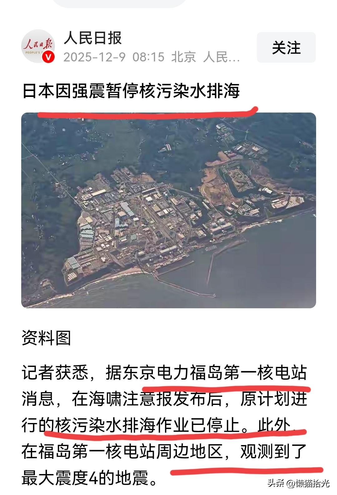 如果不是这次大地震,大家可能都忘了日本人一直在将核污水排海… 这次强震会不会再次造成核泄漏?日本计划将福岛第一核电站的核污染水持续排海30年以上。 这个计划是为了排放目前囤积的134万吨核污染水,自2023年8月首次排海至今,截至2025年12月已启动第17轮排海,累计排放量已超过12.5万吨。 持续30年,排放134万吨核污染水,想想都恐怖,中国、韩国和俄罗斯这几个周边国家怎么办?随着时间增加,这些国家的邻近水域肯定会被污染,吃了污染水域的海产品,白血病、癌症风险怎么控?日本排放核污水