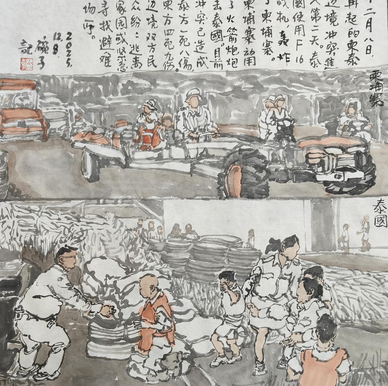 2025碗子记事:12月8日,再起的柬泰边境冲突进入第二天。泰国使用F16战机轰炸了柬埔寨,柬埔寨动用了火箭炮炮击泰国。目前冲突已造成泰方1死8伤,柬方4死9伤。边境双方民众纷纷逃离家园或紧急寻找避难场所。2025.12.8.碗子记之