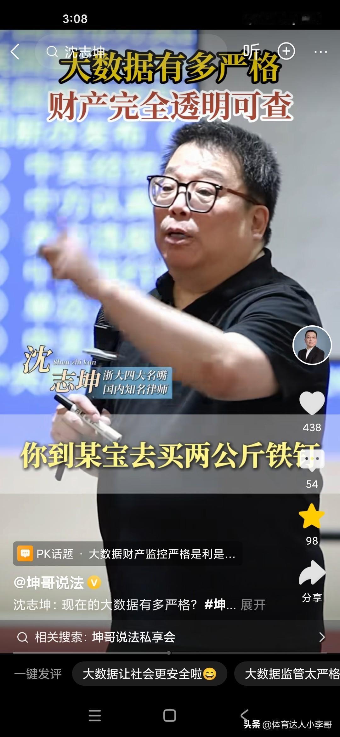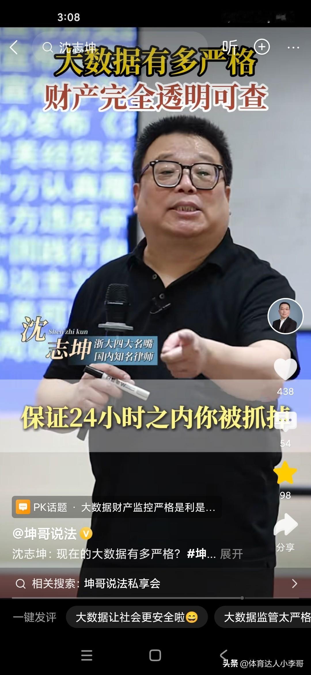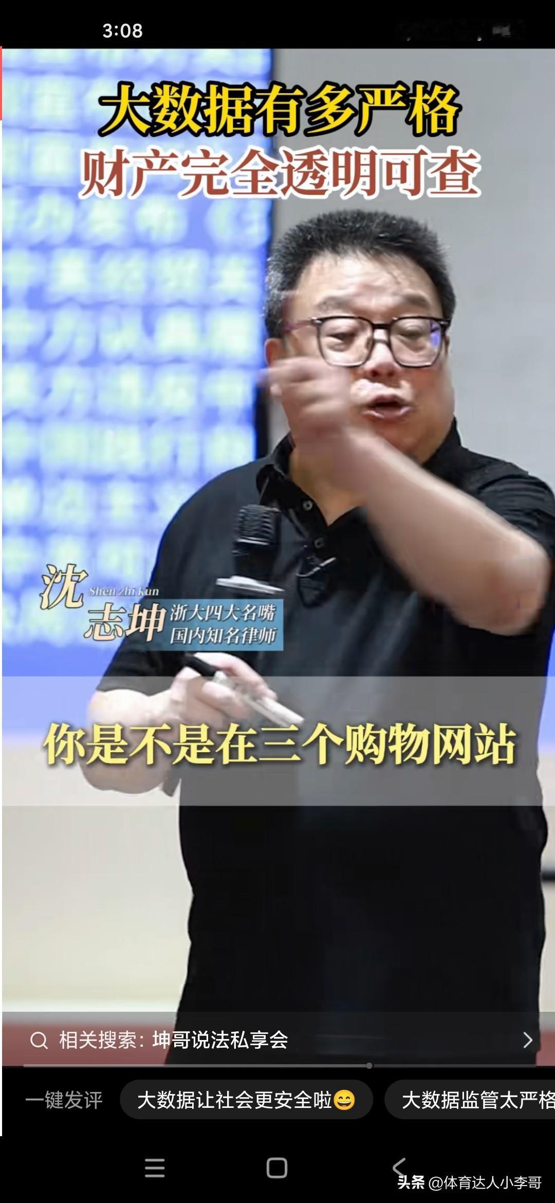 浙江大学法学院的教授沈志坤说现在的大数据是非常厉害的,他说我们看到公安机关碰到某些重案或要案,通常来说并不是群众举报的,可能只是说经过群众举报,其实是大数据推测到的,比如说你自己在网上,在淘宝网上买的一些铁钉,然后在拼多多上买一些化肥,再在另外一个购物网上买一些硫磺,这这这就是非常明显的要制作炸药炸药了,如果你一旦到了家里,可能就会立即被警察逮捕了,因为这个大数据是不会说谎的,是很精准的,就是从各个网络然后全部汇聚到一点,就极有可能你有犯罪的意图,因此的话,大家现在的财产几乎处于透明状态,不要觉得你可以玩过网警,不要以为你可以玩过大数据!