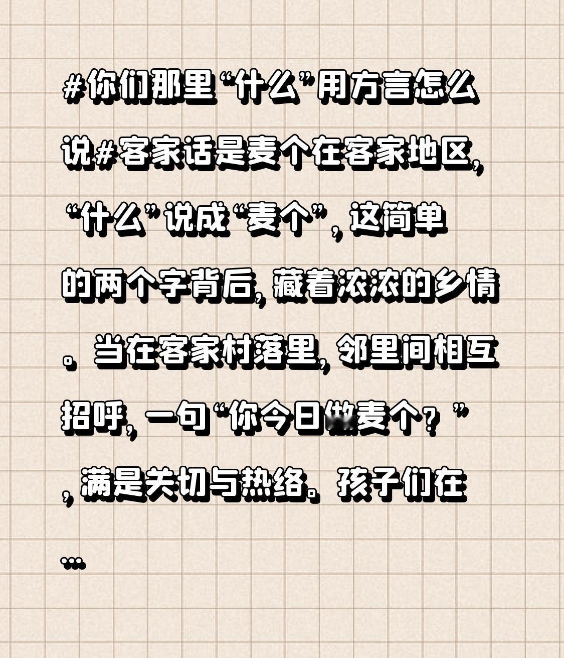 当在客家村落里,邻里间相互招呼,一句“你今日做麦个?”,满是关切与热络。孩子们在巷子里嬉戏打闹,突然有个小家伙发现新奇事儿,会兴奋地喊着“这系麦个?”,那清脆的童音里,是对世界满满的好奇。 而且啊,不同地区的客家话,“麦个”的发音还会有点小差异。有些地方音调更婉转,有些地方则更干脆利落。就像同一棵树上的叶子,虽大致相同,却又有着细微的独特之处。这小小的“麦个”,就像一把钥匙,打开了客家文化的大门,让我们能感受到那源远流长的语言魅力和独特的地域风情。