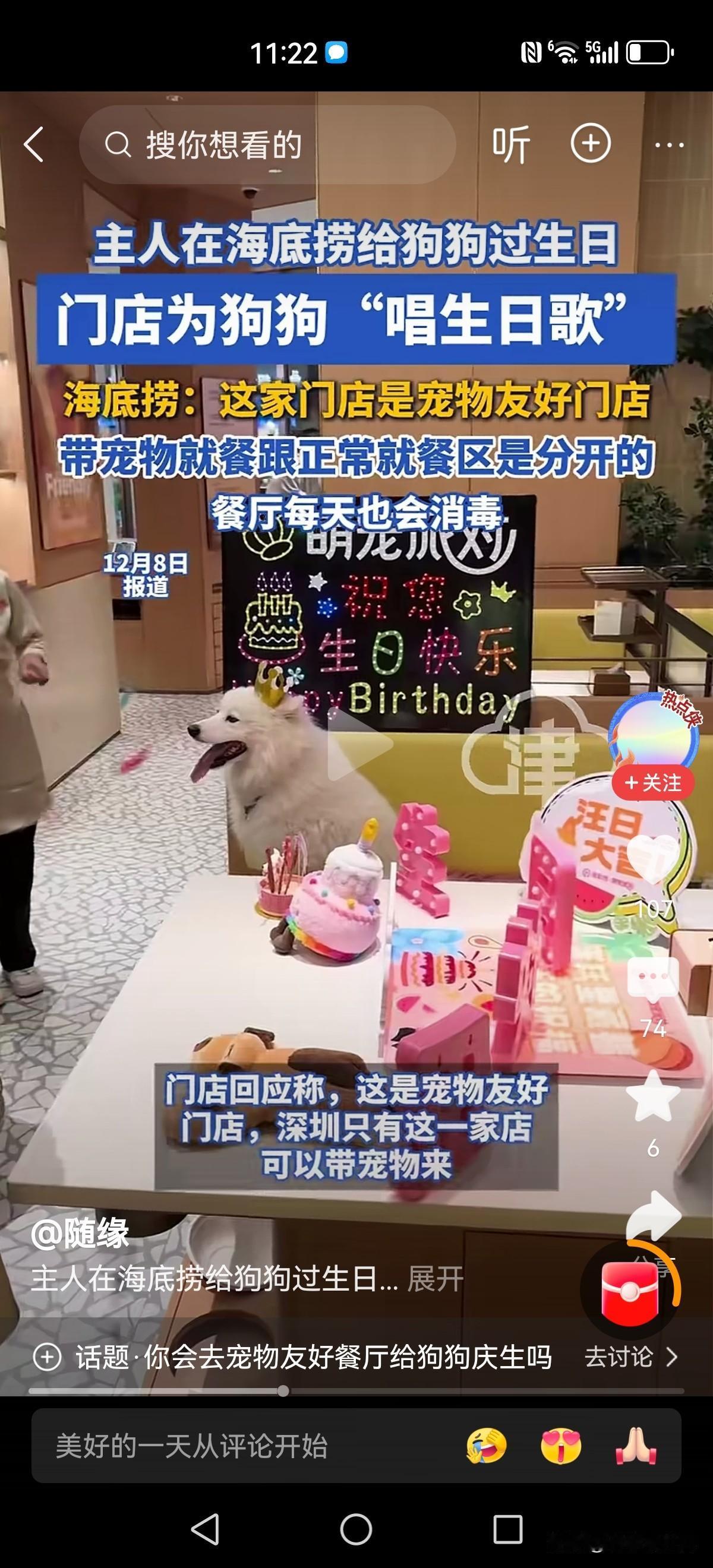 这狗的待遇,已经远远超过80%的国人了! 主人在海底捞给狗子庆祝生日,像模像样的,蛋糕礼物生日歌一个不差! 祝福语更是绝了,祝“您”生日快乐!海底捞待遇 小狗过生日 狗狗自助餐 泡温泉的狗子 海底捞宠物 海底捞狗餐厅 狗狗生日餐