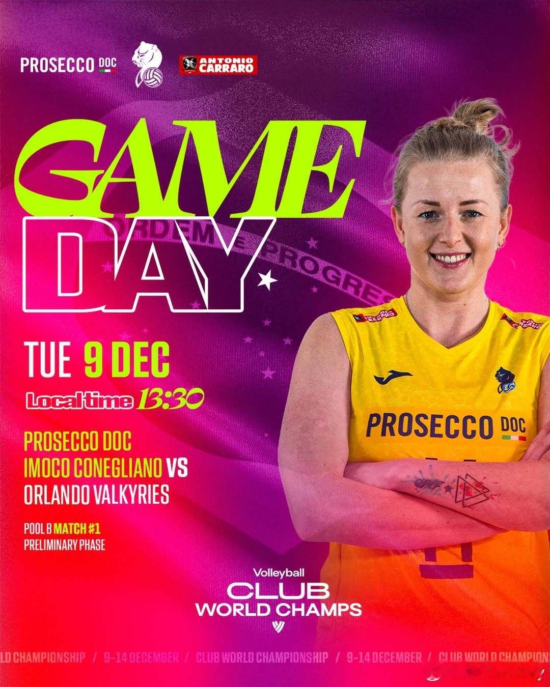 科内女排世俱杯 比赛日海报科内利亚诺 vs 奥兰多·瓦尔基里时间:北京时间明天凌晨0:30,当地时间 13:30(中欧时间 17:30)地点:自由市场竞技场(帕卡恩布体育场)- 圣保罗(巴西)直播平台:VBTV 与 DAZN(需订阅观看)、企鹅体育、dy平台女排国际排坛动态