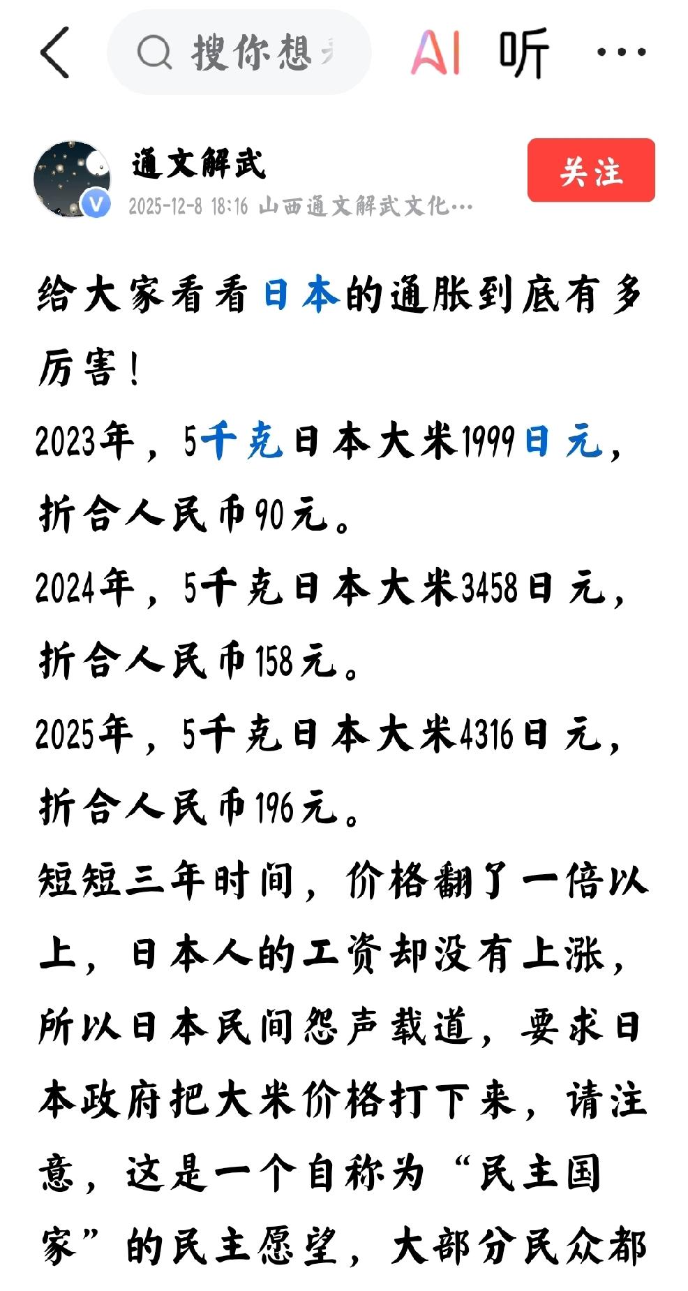当下日本政府内斗,物价上涨 个人观点:日本到了一个历史时刻,一个民众敏感时机。 现在的日本物价高昂,民众生存生活,压力巨大。在这个时候发生了连续不停的强震,7.6级和6.6级是无法想象。 对当下最优先级是救灾。可是日本现任政府对外:忙着展开恶意挑衅,栽赃嫁祸,倒打一耙,颠倒黑白,误导欺骗国际社会。对内:日本政坛各路人马,各路派别都在忙着激烈内斗,你死我活之争。 个人认为:最后万不得已,只好民众自救。在这个时刻,才是看清日本政府的最佳时机,所以需要全球高度关注当下日本。 如果日本政府都无法真心对待本国民众:无法真心实意,帮助服务本国选民。那么全球各国政府与民众又怎么会相信日本的承诺?