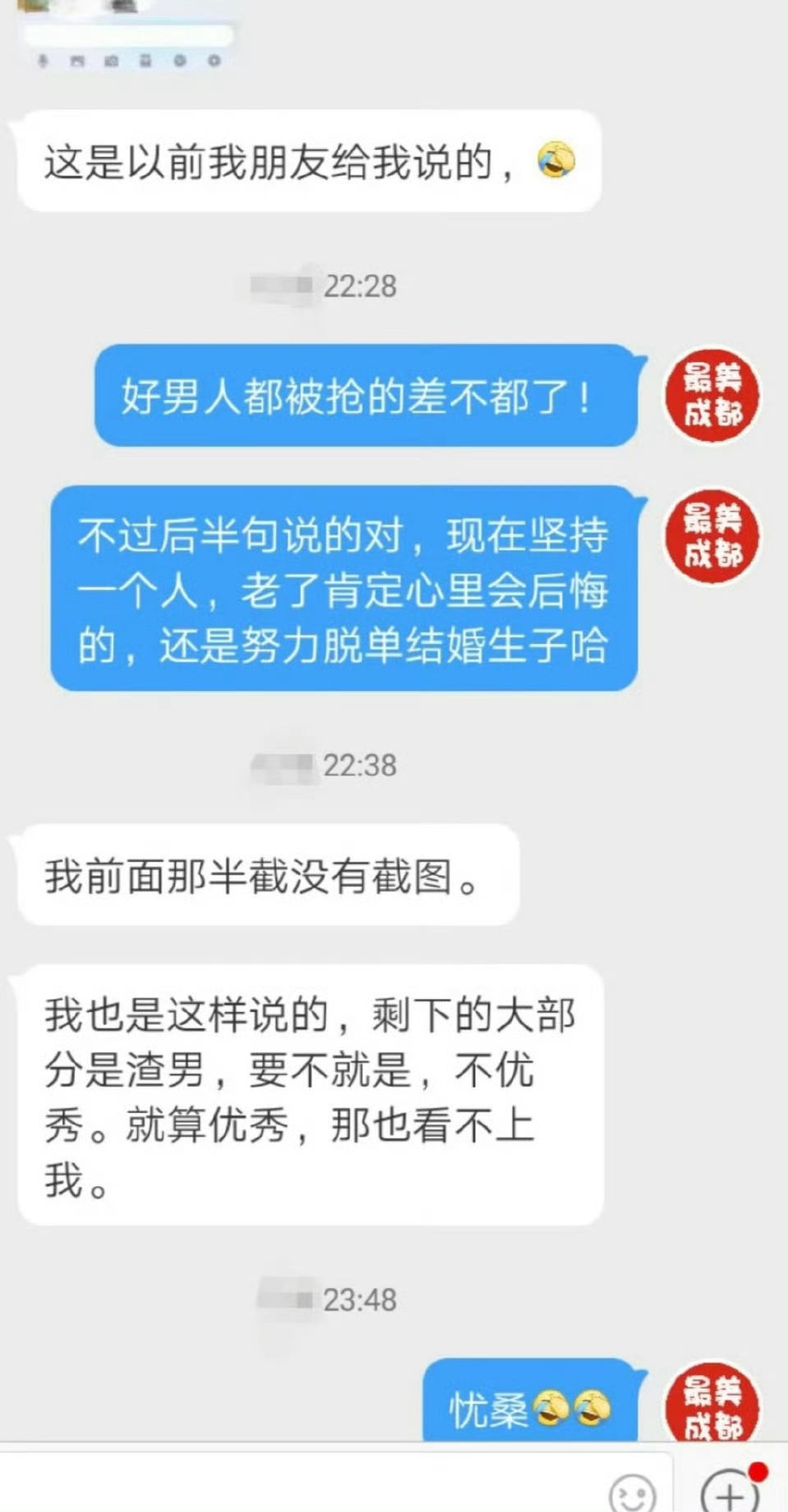 【好男人是不是都结婚了?剩下的非渣即差】小美,我有点不想结婚,不想嫁给别人当保姆!但闺蜜说我一个人的话老了肯定会后悔。现在想找个满意的男生太难了,剩下的大部分是渣男,要不就是条件差的,优秀的又看不上我!恐婚的我该怎么办? 嫁了个这样的又生了个这样的你为啥被剩下了?好男人都去哪里了?你是好男人么?男子追已婚育服务员3个月欠20万 成都