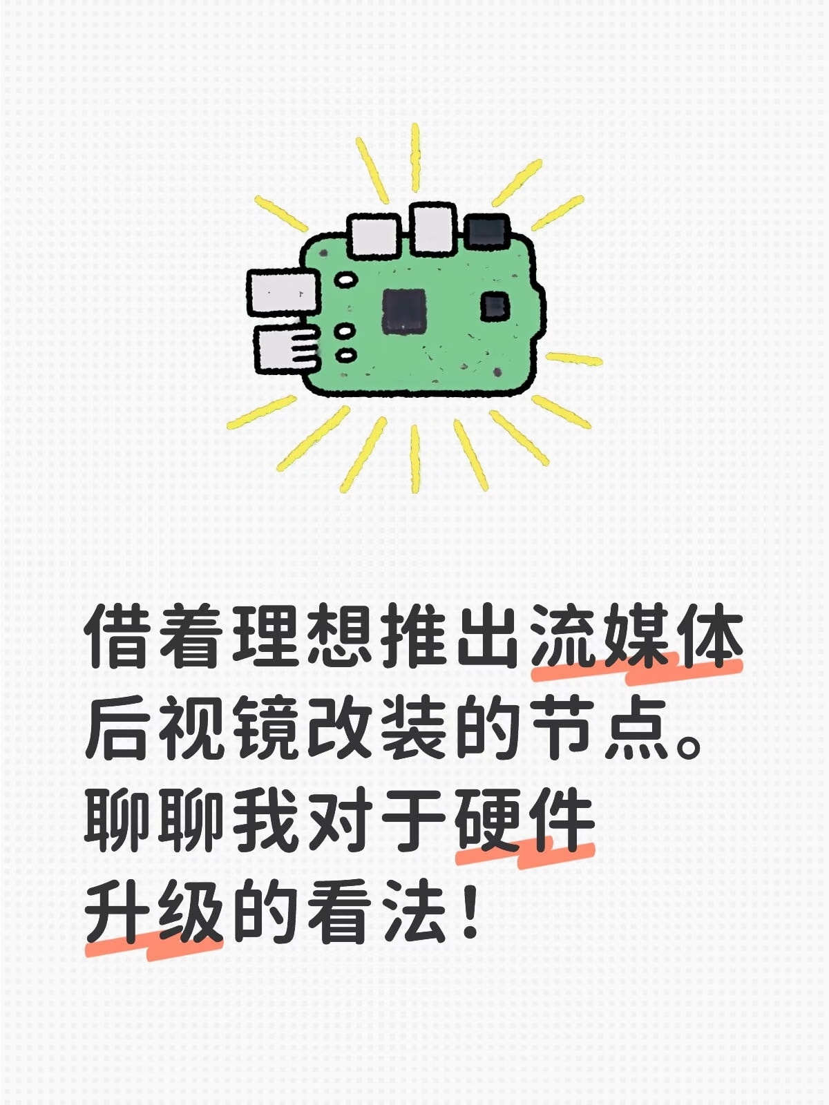 一句话,不要期待任何产品的硬件升级,这是pc电脑就已经演示过的局面,哪怕你从设计之初就是计划好了升级,但是现实就是计划永远赶不上变化。我会支持厂家提出可升级方案,这是能满足一小部分人需求的,但是我不支持过于期待这个事!现实和期望的矛盾几乎不可能调和!
