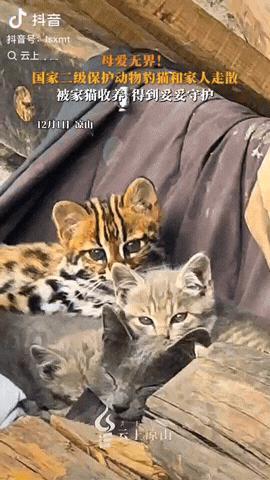 四川,一男子登山中途休息,意外在路边农家一户柴火堆里,他发现了母猫和一窝小猫,竟然还有一只颜色漂亮的小豹猫,而它一样得到母猫的庇护。网友:原来母爱不分物种。 信息来源:云上凉山 那天他脚酸,随手坐到柴堆边,忽然听见里面“喵喵”细声细气的叫。 他心想:……这哪是野鸟?凑上去拨开几根干枝,一堆稻草里,蓝猫妈妈正抱着三只小土猫,最里头还躺着一只棕色带斑点的小家伙。 拿出手机一搜,原来这是国家二级保护动物:豹猫幼崽。 更神奇的是,这只正在哺乳期的蓝猫根本不介意“外来客”,不分彼此地一律喂奶、舔毛,还把小豹猫搂在最暖和的地方。 小豹猫也完全不怕生,时不时跟小土猫们互蹭脑袋,睡得呼噜呼噜的。 说到底,这事儿也有科学道理。 豹猫又叫铜钱猫、石虎,平时夜里出动,独来独往,靠捕鼠、吃蜥蜴活命。 这只幼崽估计跟妈妈走散,恰好撞进蓝猫的“托儿所”,被满满母爱俘获。 可它毕竟缺乏捕猎、躲避天敌等生存技能,贸然放回山林,成活率堪忧。 男子看着它越长越大,体型都快赶上蓝猫了,心里直打鼓:猫妈妈以后吃不消啊。 再说,近几年生态变好了,遂宁、自贡那些地方都能见到豹猫出没,可这娃要练本事还得去专业机构。 于是他和农户商量,准备及时上报给林业部门,让专家来评估,并给出野化训练的方案。 现在,这窝猫由蓝猫暖心带大,农户也自发守护,男子每天跑来观测、拍照,村里人都跟着关心。 下一步是把小豹猫暂时留在猫窝里补钙长体,还是送到保护区系统培训? 我觉得,除了求助官方,还得请野生动物康复中心做行为训练,让它学会自己狩猎、认路回山林。 总之,希望这小豹猫能被善待,后期放回山林也好,让它过上属于它原来的生活。
