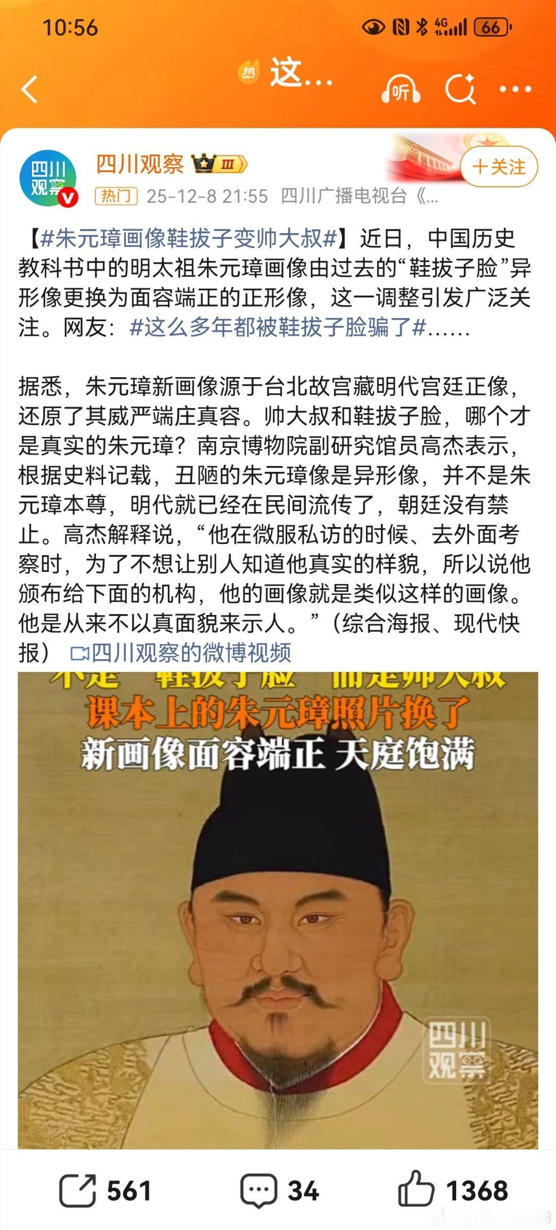 朱元璋画像鞋拔子变帅大叔经常说历史会被人改写,但一些人就是不信。这不,明太主朱元璋才多少年,就被丑化成这样了?