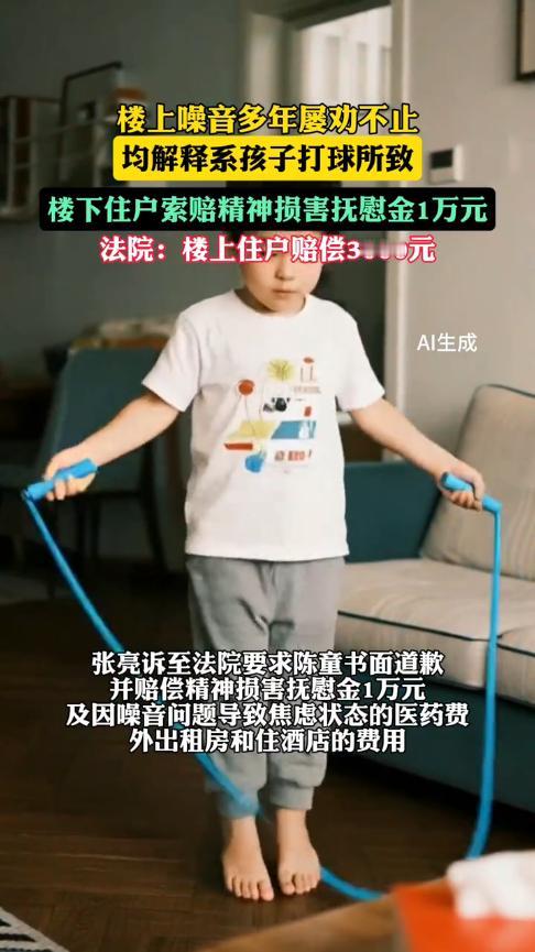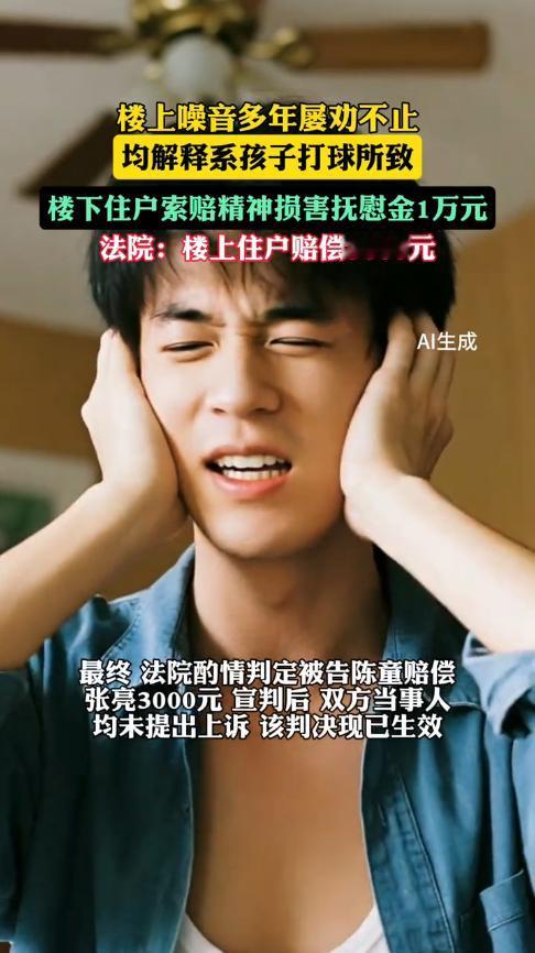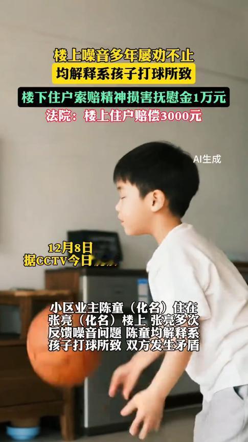 “还敢在家打球吗?”北京,一男子因不满楼上邻居产生的噪音,就找对方理论,邻居表示是孩子打球造成的,会采取相应措施,可之后仍不断有噪音传出,男子忍无可忍,只能搬出去居住,并将邻居告上法院。法官:赔偿3000元! 小孩子都十分调皮的,这虽然是他们的天性,但家长也要经常教育,毕竟孩子不懂事,不知道这样会影响别人,如果家长放任他们继续这样,只会养成不良的习惯。 据媒体12月9日的报道,陈先生和张先生是上下楼邻居,张先生却对这位邻居非常没有好感,因为自己总是被噪音所打扰。 忍了几次后,张先生发现这样不是办法,就找上门去,和陈先生说了一下,对方表示会好好教育孩子,尽量不打扰到大家。 可是,这番提醒并没有取得实质性的进展,楼上依旧噪音不断,这使得张先生的精神状态愈来愈差,最后都搬出去居住了。 张先生最终将陈先生起诉至法院,要求赔偿1万元。 法院审理后认为,该噪音是人为造成的,且并非日常生活行为,理应是可以避免的,因此陈先生需要承担责任,要求他赔偿给张先生3000元。 生活中,搬动物品和走路都会制造出声音,这是无法避免的,而我们能做的,就是尽量让噪音小一点,毕竟大家抬头不见低头见的,也要多为别人考虑。 信息来源:《楼上噪音多年楼下获赔3千。法院:运动非日常生活行为且并非偶发。》纵览新闻