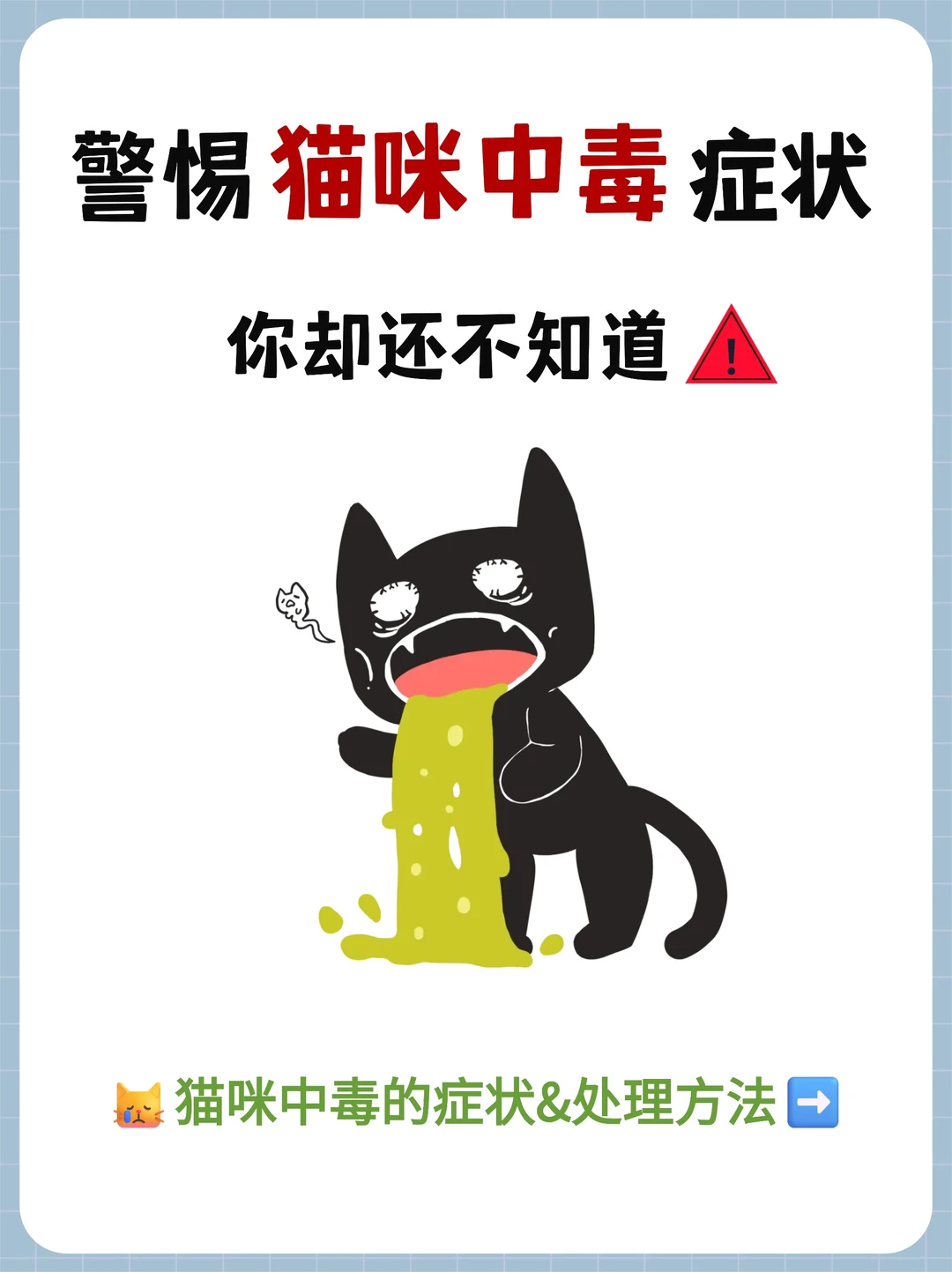 ⚠️如果怀疑猫咪已经中毒,请立即联系兽医或动物中du控制中心,这是最快速、最有效的抢救方法!千万不要抱有侥幸心理❌