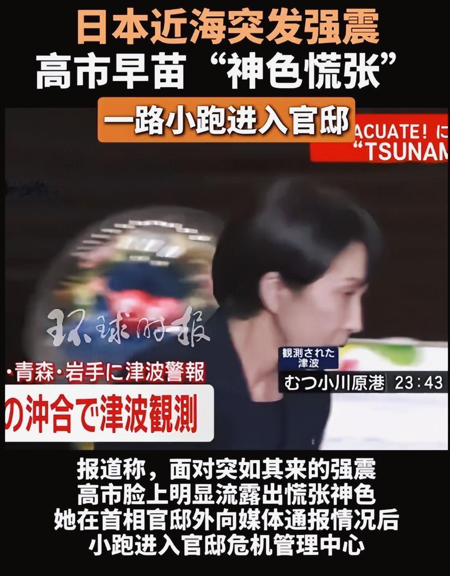 日本突发7.5级强震,9万人紧急撤离!高市早苗“神色慌张”一路小跑进入官邸。官方警告这或许只是开始! 日本东北昨晚又来一场狠的地震,吓坏不少人。 大概情况是12月8日深夜11点多,日本东北海域发生 7.5级强震,震中在青森县外海约80公里,深度约50多公里。八户市震感到日本“6强”级别,人站都站不稳,家具可能直接倒一片。 日本气象厅一开始发 海啸警报,说可能有3米大浪,北海道、青森、岩手很多沿海居民被要求撤离,约9万人先跑到安全地带。 后来监测到的海啸大多20–70厘米,风险没那么夸张,警报陆续下调,到了9日凌晨基本解除。 目前确认有人员受伤,多数是被掉落物砸到之类,暂无大规模伤亡报告。不同媒体统计在20多人到30人左右。当地铁路一度停运,部分家庭短暂停电。 核电站暂时没报出严重异常,官方说没发现安全问题。 日本气象厅说这几天可能还有更强余震,沿海的人别大意,最好先把避难包、路线再确认一遍。 这次属于强震+小海啸,日本东北本来就是高风险区,接下来一周还得盯紧余震。