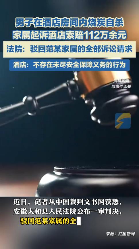 “严查到底!”2024年12月,安徽阜阳,一小伙逃学后,住进了一家酒店,随后破坏掉房间内的烟雾报警器,然后封死门窗,点燃木炭自杀了!家属得知后悲痛万分,认为酒店没有尽到保障义务,因此索赔112万元!法院:无需赔偿。 现在年轻人的压力越来越大,不仅要忙工作,还要照顾老人、孩子,根本没有自己的时间,不少学生也倍感压力,每天高强度的学习压力,放学后还有各种兴趣班要去上,不知不觉就压垮了无数人。 2024年12月2日早上,小范在一家酒店办理了入住,随后他就在房间里开始实施准备已久的“自杀计划”,他先是弄坏了顶部的报警器,然后用胶带封好门窗缝隙,最后点燃了准备好的木炭。 随着室内的空气越来越稀薄,小范最终窒息而亡。 而在此期间,家人发现小范没有去上学后,也在当地寻找起来,当天晚上,小范的舅舅就曾到访过这家酒店,但由于他没有拿身份证,酒店无法查询二人的关系,处于隐私的考虑,并未帮其开门。 结果第二天早上查房时,却发现小范已经没了呼吸。 家人得知后悲痛欲绝,认为全都是酒店疏于管理害了孩子,所以将其起诉至法院。 法官审理后认为,在未出具身份信息的情况下,酒店的做法并无过错,再加上房间内找到了小范的遗书,可以确定为自杀,因此此事和酒店并没关系。 大家觉得法官判得对不对? 信息来源:《男子在酒店房间轻生,家属起诉酒店索赔112万余元被驳回》红星新闻