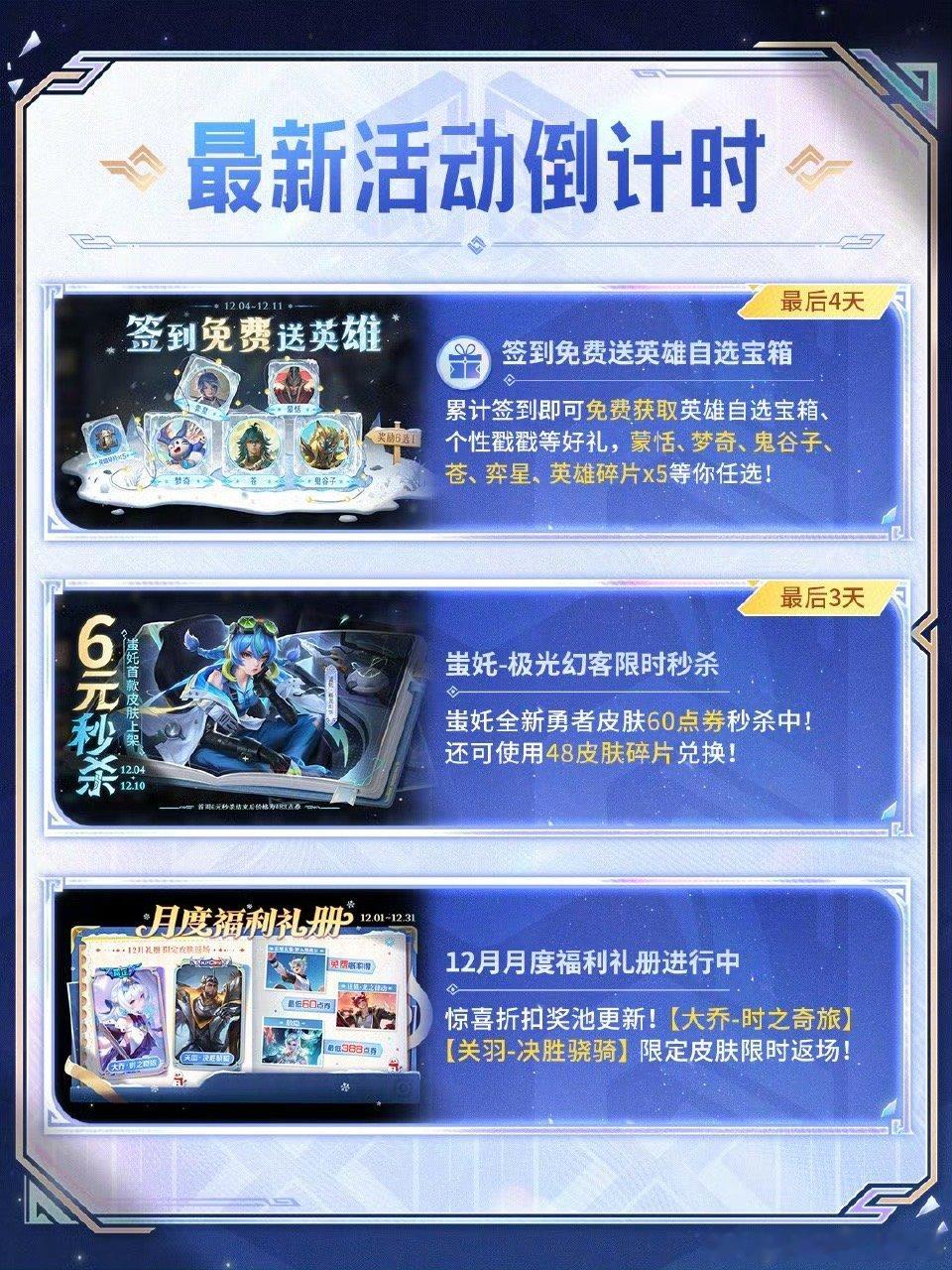 《王者荣耀》近期的版本更新有哪些?近期《王者荣耀》的版本更新集中在12月。
