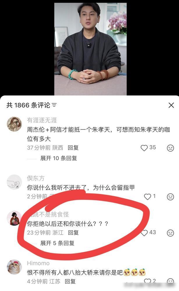 刚刚!朱孝天亲自出来回应了! 大概意思就是,他这次没跟另外三人一起,是因为前面的沟通只停在意向阶段,没正式定下来,所以大家各走各的算正常。 我理解下来就是,他觉得自己没被排他,算是一次互相都能做选择的场面。 可转头他又点名提到音乐的艾姐,问她为啥说的和做的不一样,还像是在背后给他泼脏水,这一下气氛就变味了。 我当时看到这段的时候有点困惑,他前面才说彼此都有自由,结果别人真选了别的方向,他又明显不爽,这情绪落差挺明显的。 更在意的是,他把“找人代替”当成一种羞辱,好像这事踩到他底线了,但外界听着反而会觉得,是不是他自己心里还有个坎过不去。 说个细节,他原本那种留有余地的态度一下子就被后面的质问冲掉了,让人隐隐感觉他可能把这场合作想得太理想化,情绪被落差带跑了。 我感觉他可能是真的在意“四个人站一起”这个象征意义,才会被刺激到,但这种理想和现实本来就容易打架。 最戳我的是,他平时给人的印象挺淡定的,这次却完全藏不住内心那点不甘,反差还挺大。 说不准这事过两天就烟消云散,但现在这样闹出来,体面确实是他自己先弄碎的。