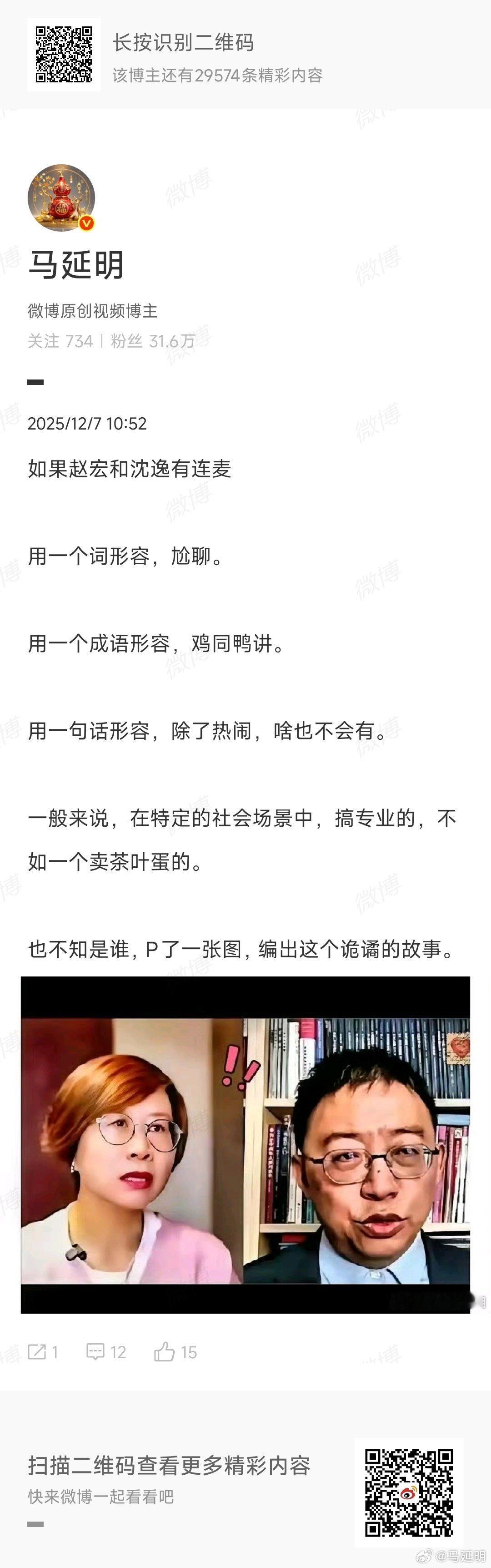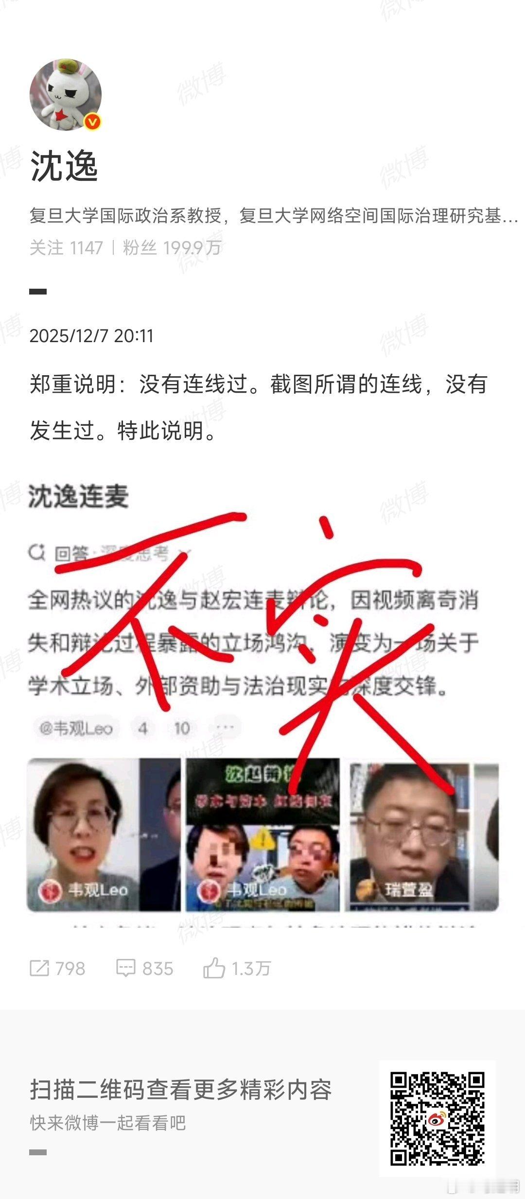 沈逸老师辟谣说他没有连线赵宏教授。这谣谁造的,捧高踩低,别说我一介草民,就连大咖沈逸老师也看不下去了。