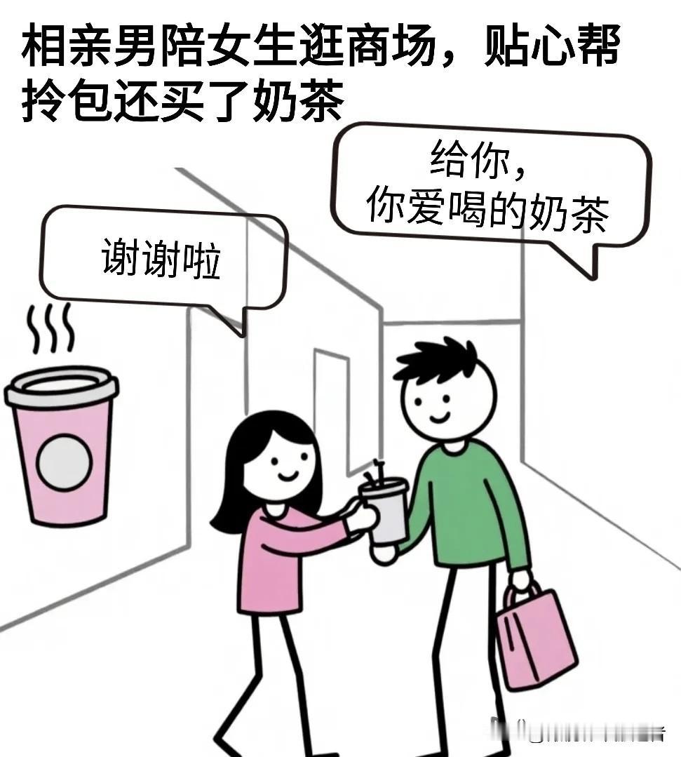 开心漫画:相亲男陪女生逛商场,拎包还买奶茶,女:你真体贴,做我男朋友吧?男生:还是算了,女:为啥?男:我看见你闺蜜给你发的微信了