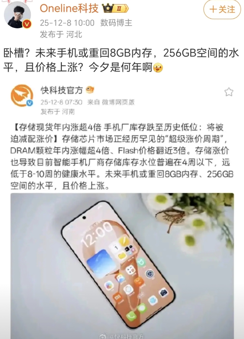 现在中低端机型不就是8G内存起步吗?如果说旗舰机要退回8G起步的话,那销量可能会一塌糊涂。毕竟现在大家用的都是12G,16G的机型,谁会换新的还越换越小了。 涨价可能是一个大趋势,但是降低内存规格基本上不可能。问题是现在内存涨价手机也跟着涨价,要是内存降价了,涨价后的手机厂商还愿意降价吗?