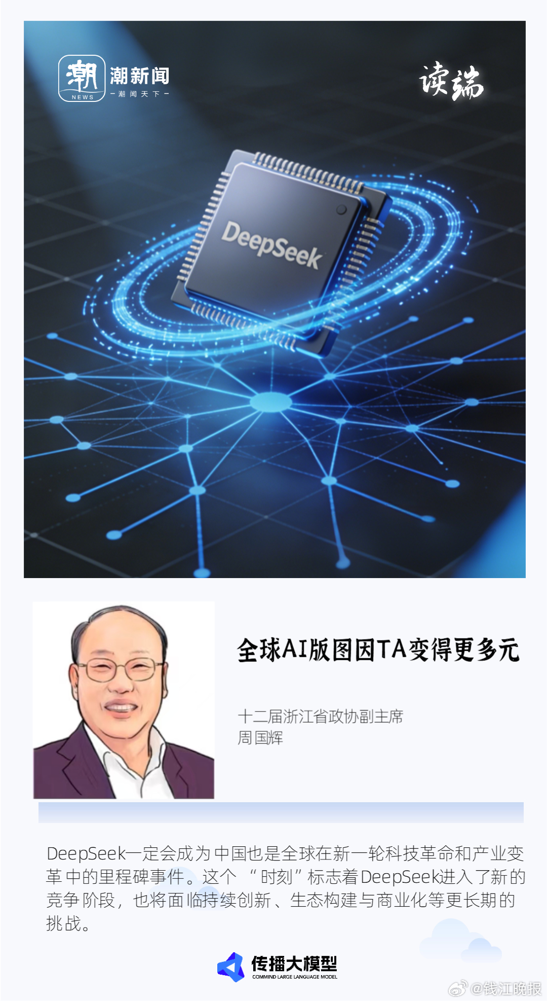 #梁文锋上榜自然十大科学人物#【读端丨梁文锋上榜《自然》十大科学人物 周国辉:#全球AI版图因TA变得更多元#】北京时间12月9日凌晨,英国《自然》杂志公布了2025年度10大科学人物(Nature's 10),深度求索(DeepSeek)创始人梁文锋、中国科学院深海科学与工程研究所研究员杜梦然入选。据了解,《自然》杂志是全球科学界公认的权威刊物。每年十大人物榜单由该杂志编辑团队遴选,旨在记录过去一年的重要科学进展、事件及其背后的关键人物,侧重于反映科学、技术、工程和医学领域的重要趋势。周国辉:《自然》刚刚评出2025年度10大科学人物,DeepSeek创始人梁文锋等入选《自然》。对于中国的科技创新来说,这无疑是一个令人鼓舞的消息。这个年度十大人物榜单并非奖项或全球前十排行榜,而是《自然》杂志编辑部对当年重大科学事件及其背后关键人物的记录,旨在反映科学发展的多样面。我查了最近二十年,后来查证的是,从2012年起至少有十位中国科学家入选,他们在基因科学、量子通信、航天探索、公共卫生等多个领域做出了突出贡献。其中包括潘建伟、曹原、邓宏魁和浙江的李兰娟等杰出科学家。今年除了梁文锋外,还有中国科学院深海科学与工程研究所地质学家杜梦然入选,理由是她和团队乘坐潜水器下潜至海面下9000多米,首次发现了位于地球最深处的动物生态系统,见证了前所未有的科学景象。梁文锋入选《自然》2025年度十大人物,并被定义为“科技颠覆者”。这不仅是个人荣誉,更是一个标志性事件,象征其技术路径和行业影响力获得了全球顶级科学刊物的认可。今年初DeepSeek火爆出圈时,国外就有人称之为“DeepSeek时刻”。我理解,讲的是DeepSeek并非单一事件的胜利,而是技术、战略和行业影响力积累到临界点的集中体现。可以从以下几个方面加以分析。一是技术实力从“追赶”到“比肩”甚至“超越”。模型性能已达到全球最顶尖水平。最新模型(如V3.2-Speciale)在数学推理、代码等硬核基准测试中,已能与GPT-5、Gemini 3.0 Pro等顶级模型正面竞争。其数学模型在顶级竞赛中得分甚至超越了人类金牌得主。其核心优势还在以“开源”形式,提供了接近甚至媲美闭源顶尖模型的性能。这打破了“开源模型永远落后”的行业旧识。二是颠覆性路径,以“极致性价比”重构游戏规则。《自然》杂志特别指出,其模型性能媲美顶尖模型,但所需构建资源仅需后者的一小部分。这得益于其创新的稀疏注意力机制等技术,大幅降低了推理成本。将高性能AI的门槛和成本急剧拉低,使得全球更多的研究者、开发者和小公司能够获取并利用前沿AI能力,构成了核心优势。三是行业与生态影响,成为全球AI博弈的关键变量。其开源策略被业界认为正在挑战Meta在开源领域的地位,并对其他闭源巨头构成了压力。同时,它正推动AI的发展重点从聊天机器人转向能执行复杂任务的智能体(Agent)。通过提供强大、廉价且可定制的基座模型,DeepSeek正在赋能并塑造下一代AI应用生态,特别是在中国本土的AI生态建设中扮演核心角色。还有一个细节也挺耐人寻味,梁文锋十分低调,以至拒绝了《自然》杂志的采访。这很能体现梁文锋的风格和《自然》的公正包容。日前,我陪同全国科协主席万钢逐个走访了“杭州六小龙” (除黑悟空之外),这也是我第一次走进“六小龙”他们。梁文锋依然不见,但从其公司技术负责人的介绍和交流中,我很为DeepSeek这群年轻人的初心、成就和一贯的低调而敬佩。我理解的“DeepSeek时刻”是指一家中国AI公司,通过“顶尖性能+极致成本+开源开放”的独特组合拳,在全球AI竞赛的第一梯队中确立了不可忽视的地位,并开始从技术追随者转变为行业规则的塑造者之一。从这个意义上,DeepSeek一定会成为中国也是全球在新一轮科技革命和产业变革中的里程碑事件。当然,任何“时刻”都是动态的。这个“时刻”标志着DeepSeek进入了新的竞争阶段,也将面临持续创新、生态构建与商业化等更长期的挑战。然而,毫无疑问,全球AI版图因为它的存在而变得更加多元和充满变数。(潮新闻 编辑 吴盈秋)