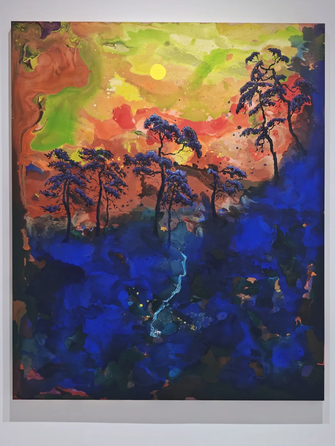 🖌️艺术创作正如人生跋涉,艺术家对生命意义进行着不懈的叩问,作品从虚到实的转化过程,展现了颜料流淌中自然形成的随机痕迹如何被赋予精神性内涵